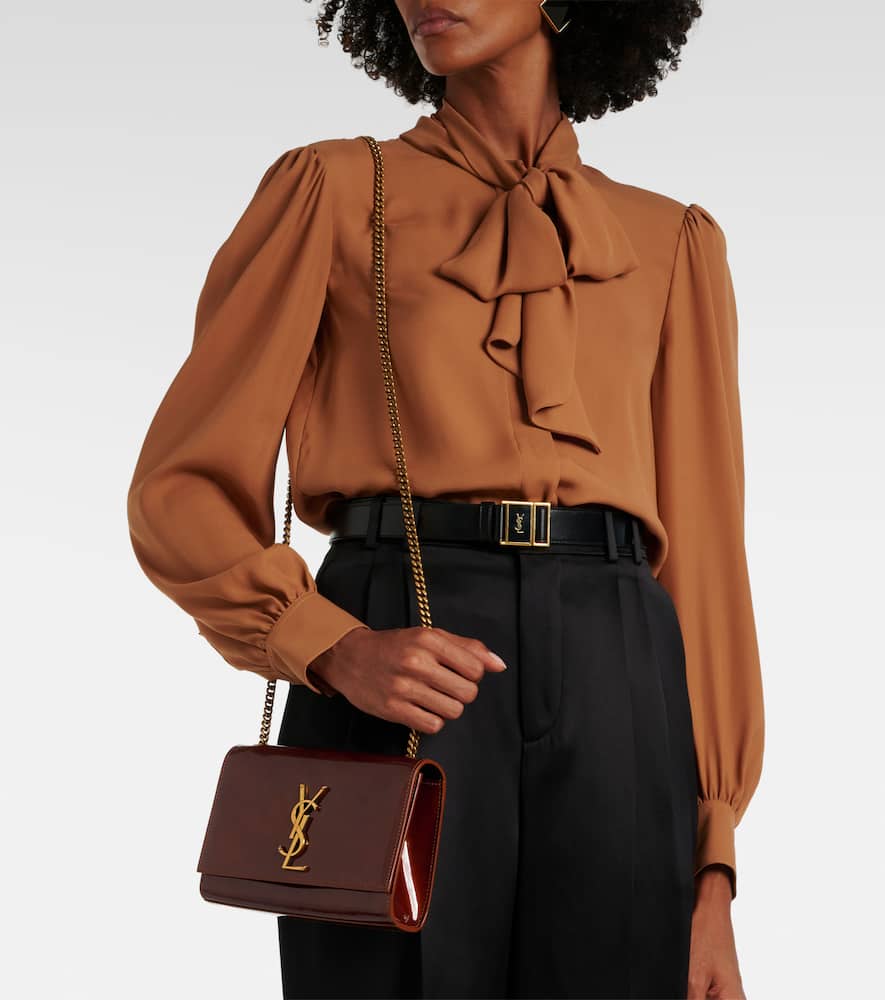 Material: leather. Lining: leather. Made in Italy. Designer color name: Baby Brown. Chain shoulder strap. Closure: snap-buttoned fastening. Internal details: internal slot pocket. Includes: dust bag. Shop the latest Saint Laurent Crossbody Bags for women now.