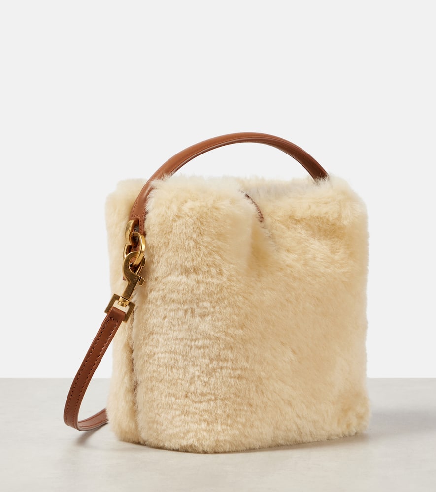 Material: lamb fur. Lining: leather. Made in Italy. Designer color name: Cream Beige/ Brick. Shop the latest Saint Laurent Top-Handle Bags for women now.