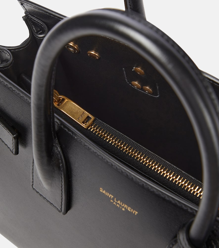 Material: calf leather. Lining: leather. Made in Italy. Designer color name: Nero/Nero. Comes with dust bag. Internal details: leather lining, internal zipped pouch, two internal compartments. Closure: open top. Detachable, adjustable shoulder strap, Top handles. Color of strap: black. Includes: dust bag. Shop the latest Saint Laurent Top-Handle Bags for women now.