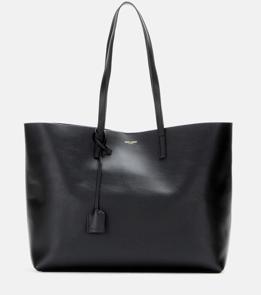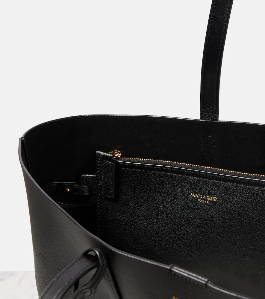 Material: calf leather. Lining: suede. Made in Italy. Designer color name: Nero. Internal details: internal zipped pouch. Closure: snap-buttoned fastening. Top handles. Detachable zipped pouch. Detachable charm. Includes: dust bag. Shop the latest Saint Laurent Tote Bags for women now.