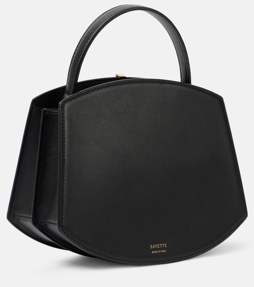 Material: leather. Lining: leather. Made in Italy. Designer color name: Black 001. Includes: dust bag. Top handle. Closure: magnetic-tab fastening. Hardware color: gold. Internal details: internal slot pocket. Shop the latest Savette Top-Handle Bags for women now.