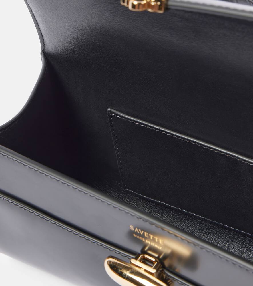 Material: leather. Lining: leather. Made in Italy. Designer color name: Black 001. Internal details: card slot. Closure: turn-lock fastening. Includes: dust bag. Shop the latest Savette Top-Handle Bags for women now.