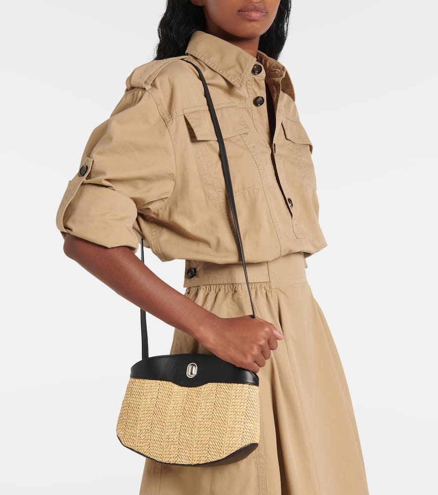 Savette Tondo leather-trimmed raffia crossbody bag. Shop Savette Crossbody Bags for women now.