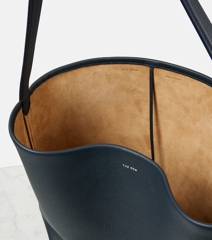 Material: calf leather. Lining: suede. Made in Italy. Designer color name: Virginia Blue. Shoulder strap. Closure: self-tie closure. Comes with dust bag. Shop the latest The Row Tote Bags for women now.