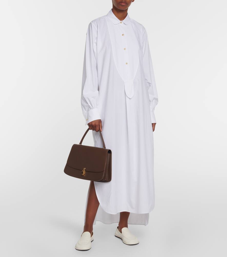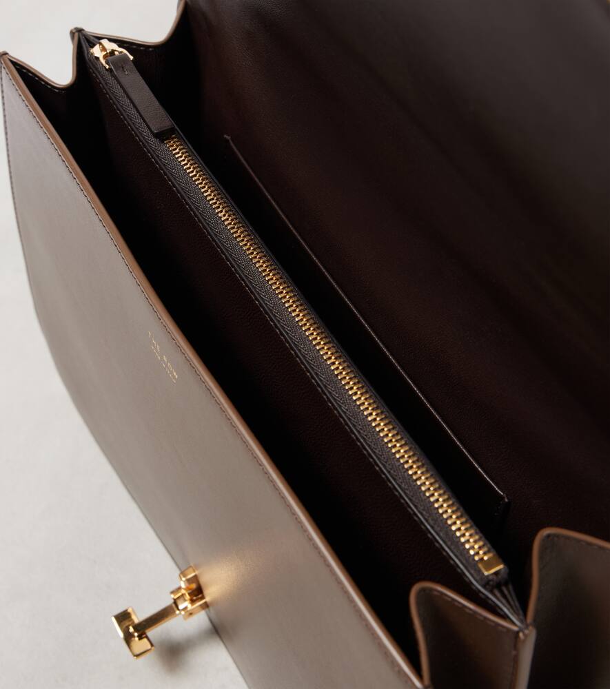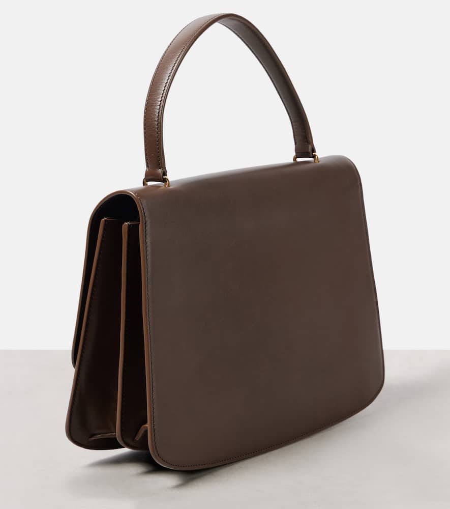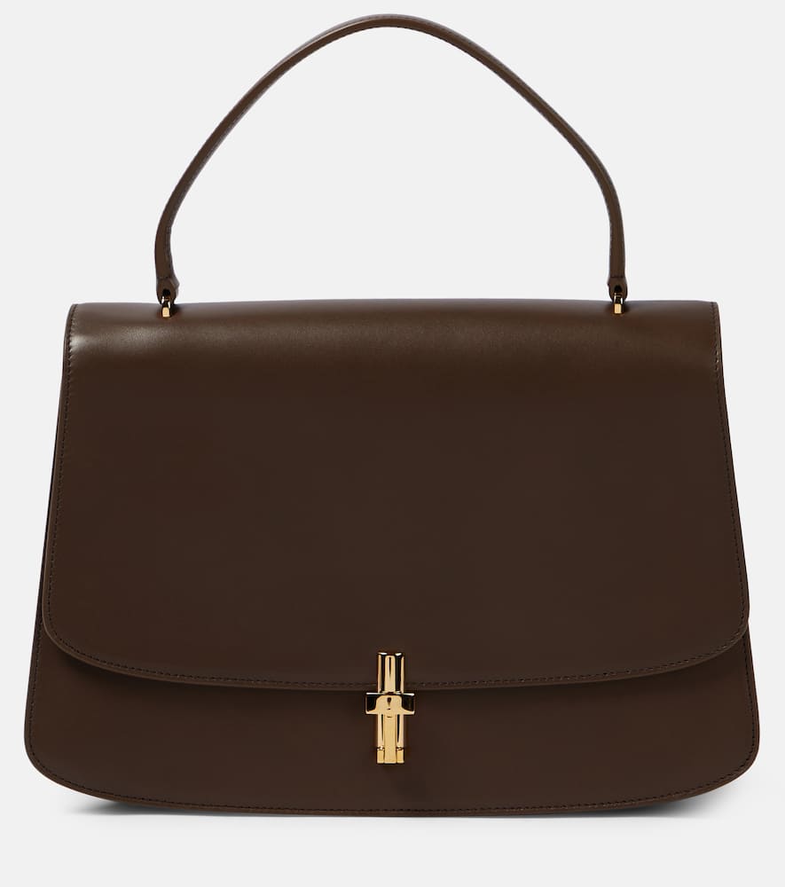 Material: leather. Lining: leather. Made in Italy. Designer color name: Stone Shg. Internal details: internal slot pocket, two internal compartments. Closure: push-stud fastening tab. Includes: dust bag. Hardware color: gold. Shop the latest The Row Top-Handle Bags for women now.