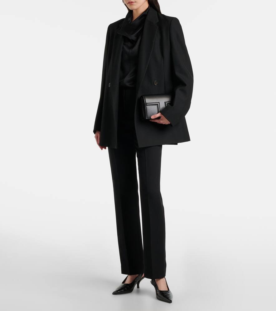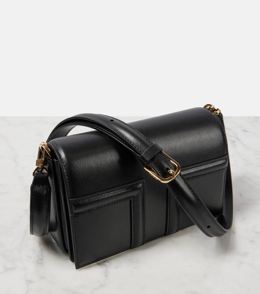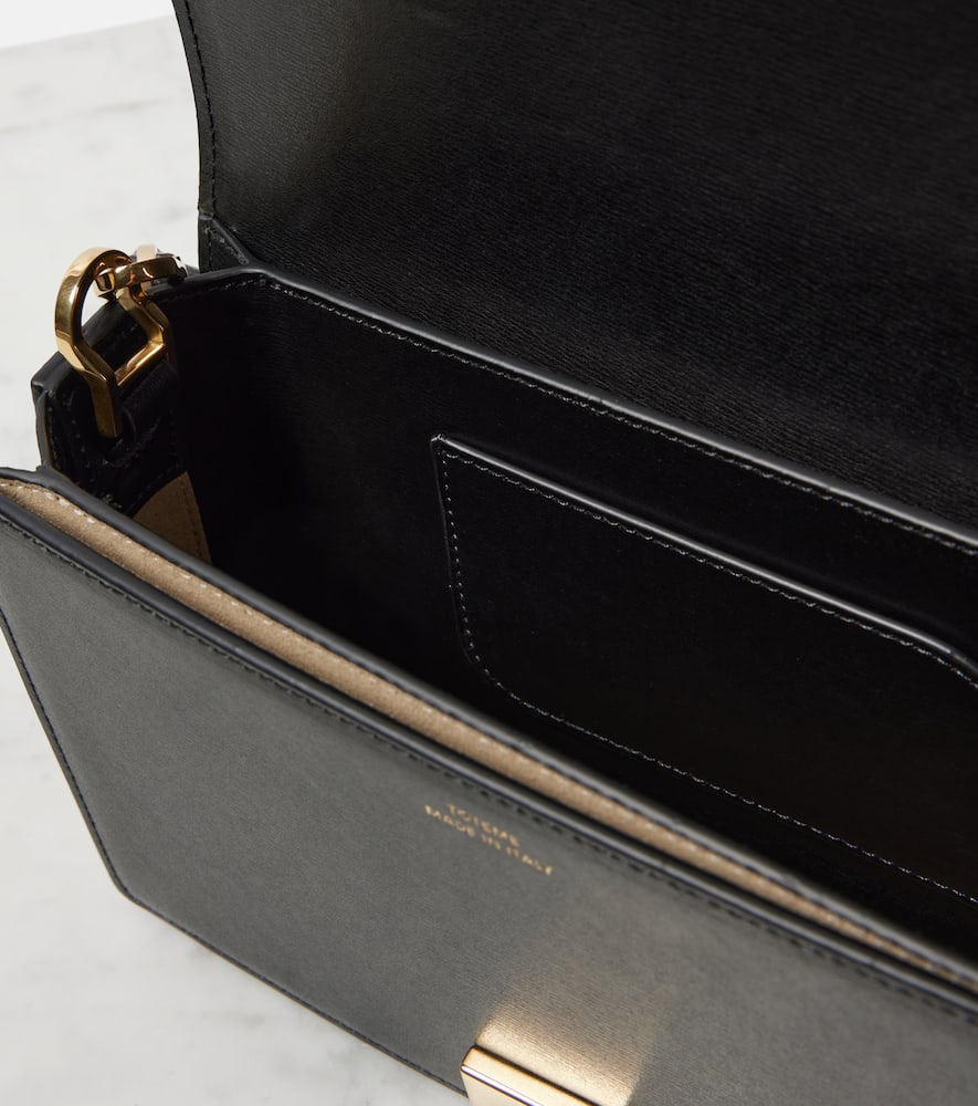 Material: leather. Lining: leather. Made in Italy. Designer color name: Black. Detachable, adjustable shoulder strap. Internal details: centre slot compartment, card slot. Closure: push-clasp fastening. Color of fastening: gold. Includes: dust bag. Shop the latest Toteme Top-Handle Bags for women now.