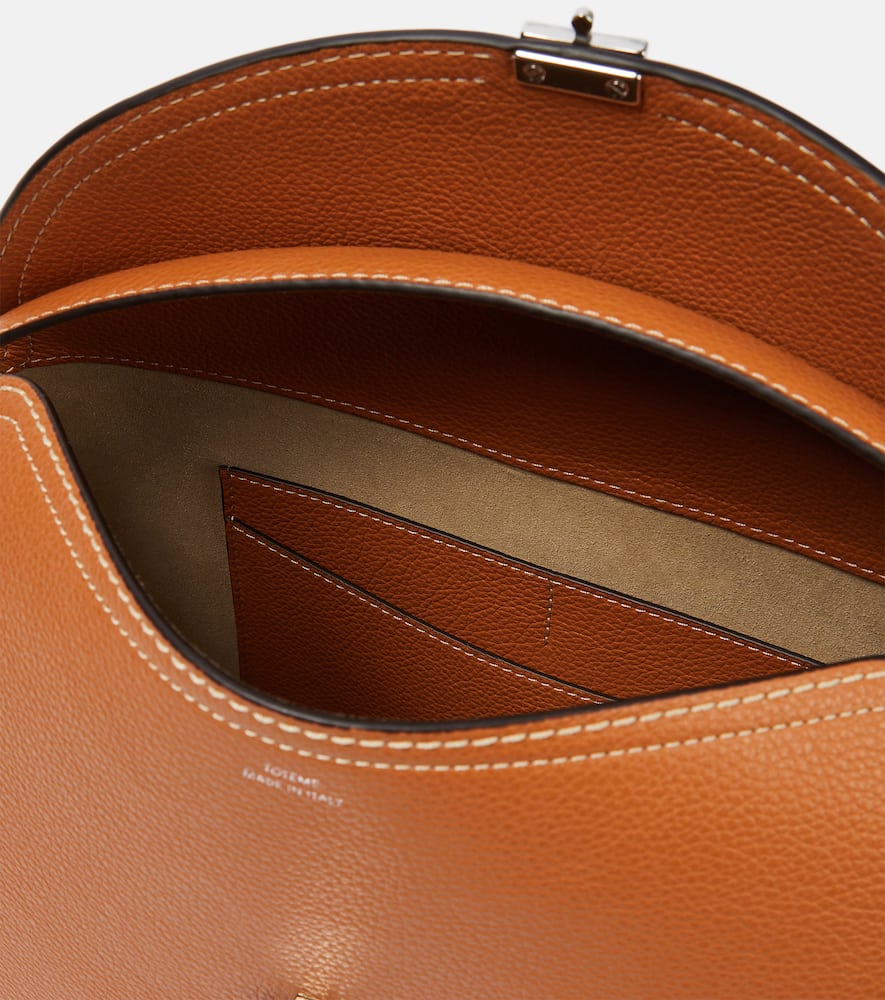 Material: leather. Lining: suede. Made in Italy. Designer color name: Tan. Top handle, Detachable shoulder strap. Internal details: internal slot pockets. Protective leather bottom. Closure: turn-lock fastening. Shop the latest Toteme Top-Handle Bags for women now.