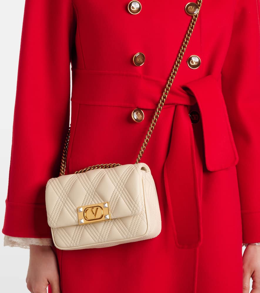 Material: lamb leather. Lining: leather. Made in Italy. Designer color name: Butter White. Closure: snap-clasp fastening. Chain shoulder strap. Hardware color: gold, silver. Includes: dust bag. Internal details: card slot. Shop the latest Valentino Garavani Crossbody Bags for women now.