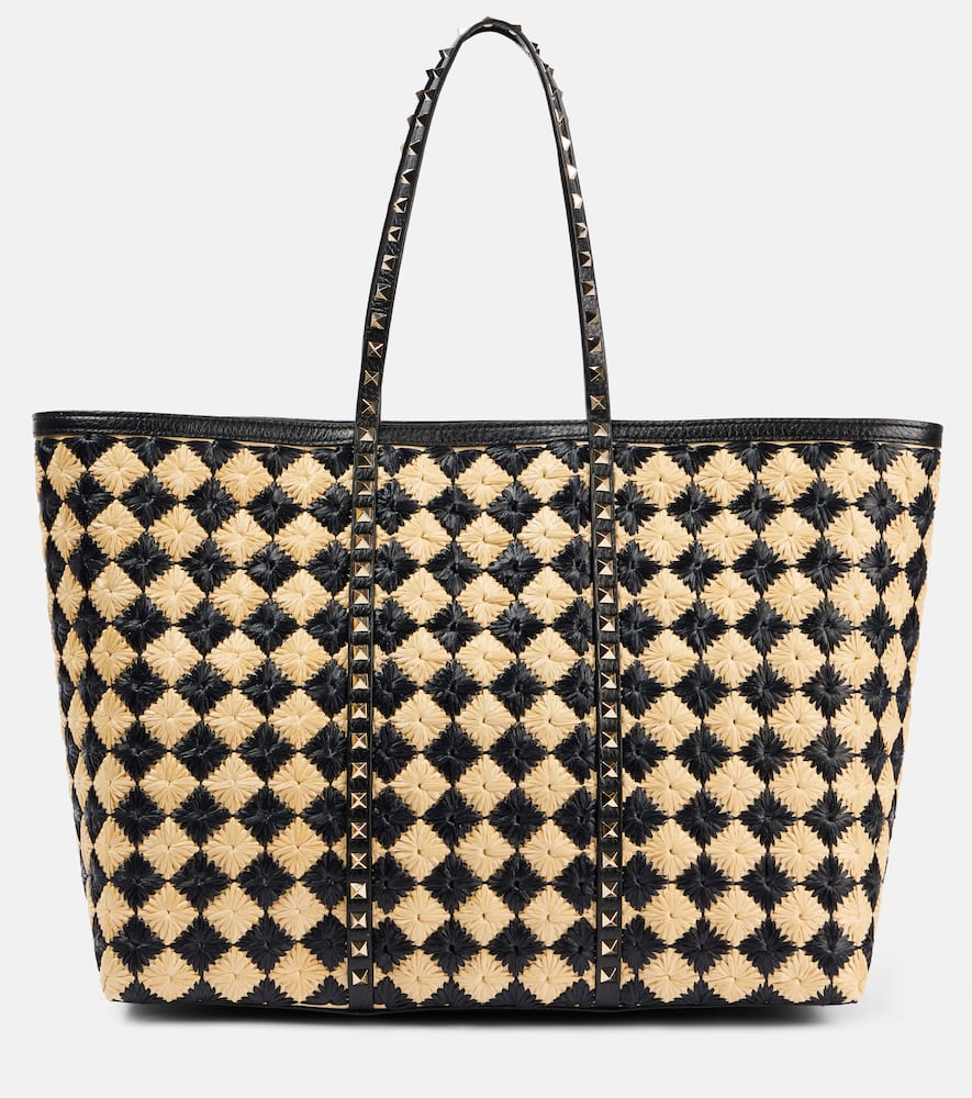 Material: fabric. Lining: canvas. Made in Italy. Designer color name: Naturale/Nero. Includes: dust bag. Top handles. Hardware color: gold. Trim: leather. Closure: magnetic-tab fastening. Protective feet. Internal details: internal zipped pouch. Shop the latest Valentino Garavani Tote Bags for women now.