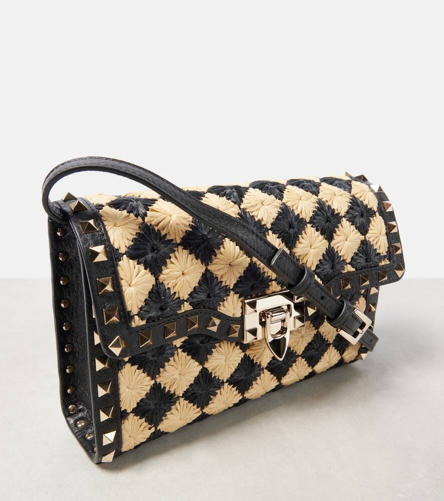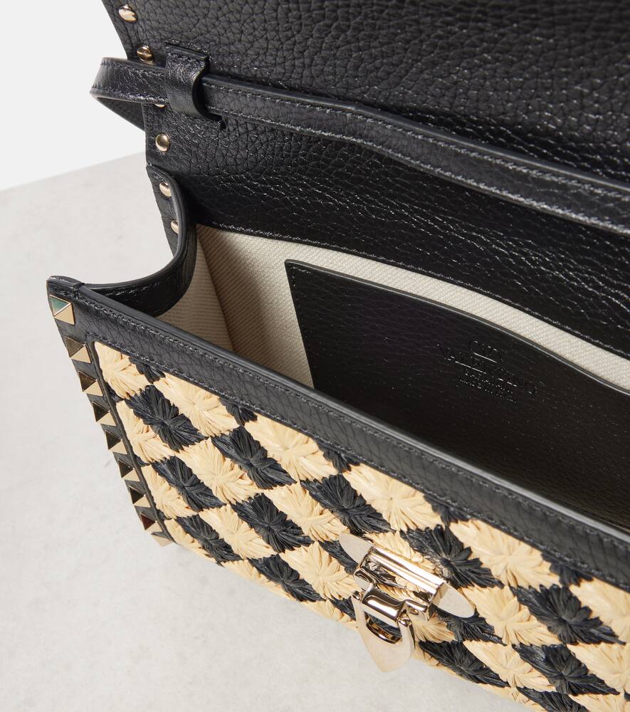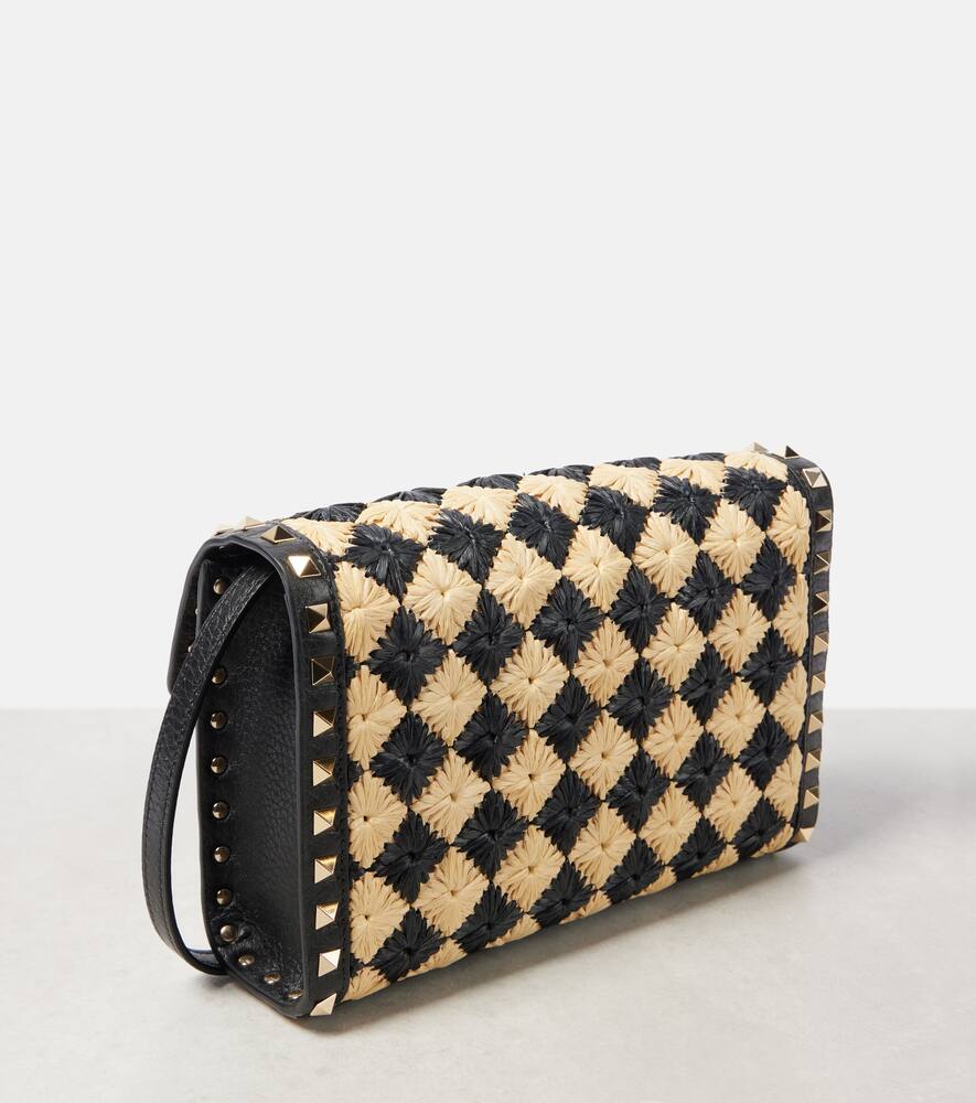 Material: fabric. Lining: fabric. Made in Italy. Designer color name: Naturale / Nero. Trim: leather. Includes: dust bag. Closure: push-clasp fastening. Adjustable shoulder strap. Hardware color: gold. Internal details: internal slot pocket. Shop the latest Valentino Garavani Crossbody Bags for women now.