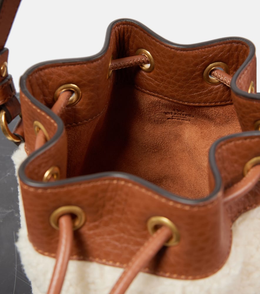 Material: shearling. Lining: leather. Made in Italy. Designer color name: Naturale/Selleria. Trim: leather. Detachable top handle, Detachable shoulder strap. Includes: dust bag, presentation box. Closure: drawstring top. Shop the latest Valentino Garavani Top-Handle Bags for women now.