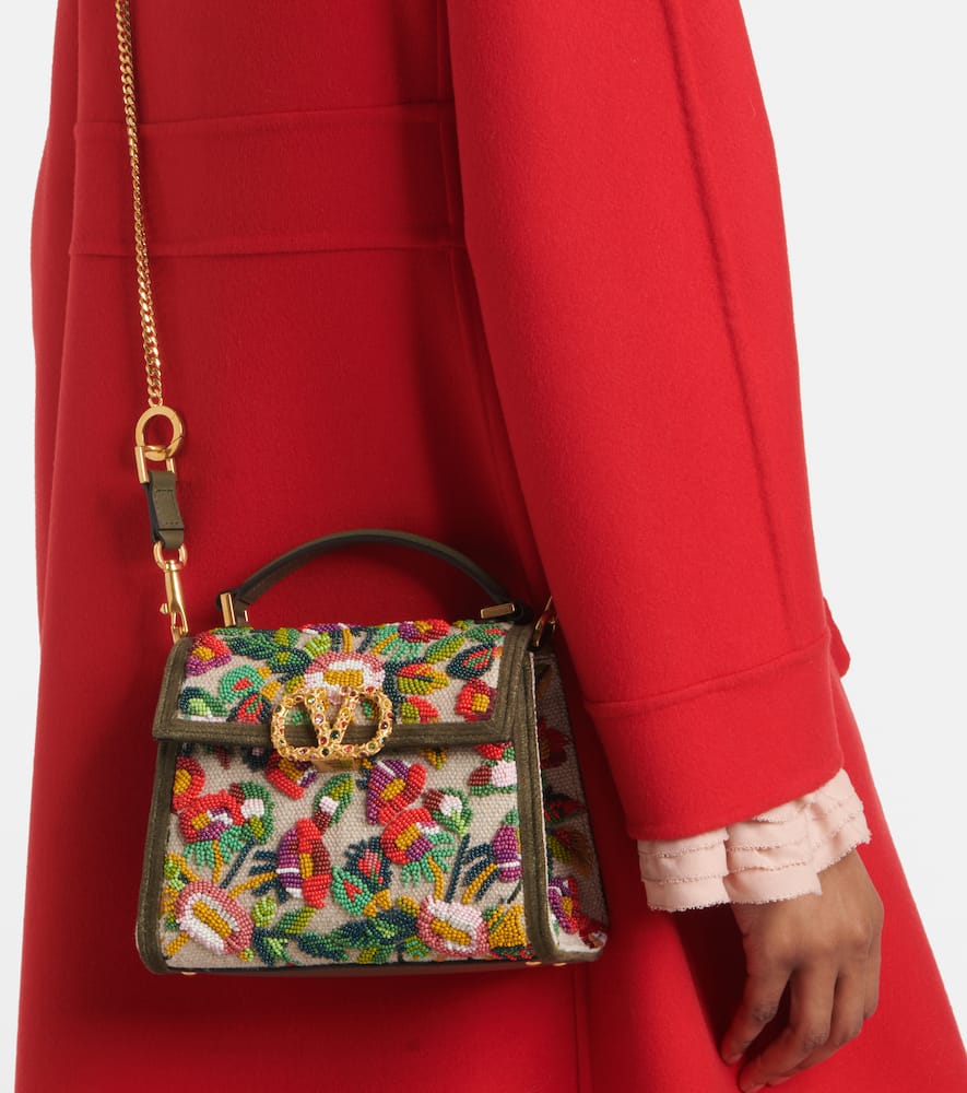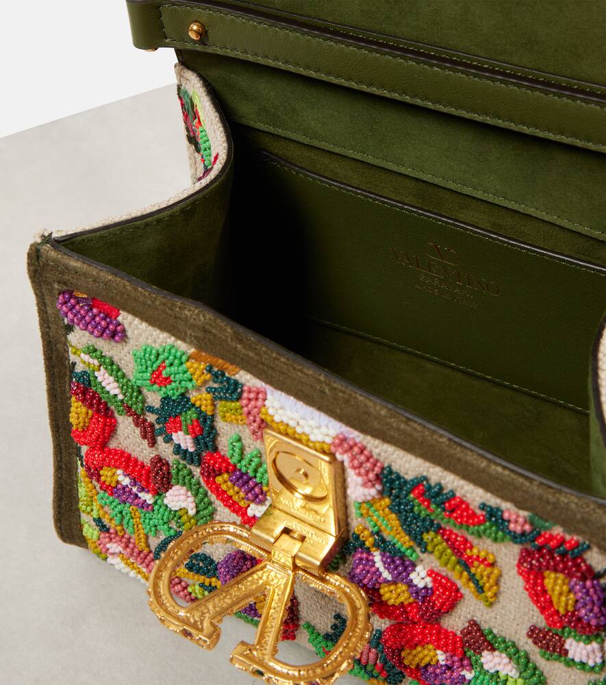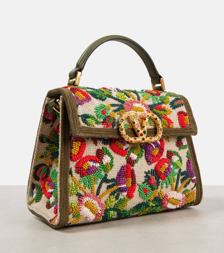 Material: fabric. Lining: suede. Made in Italy. Designer color name: Nat-Multic./For.Green/Deep. Hardware color: gold. Top handle, Detachable shoulder strap. Closure: magnetic-tab fastening. Includes: dust bag. Internal details: card slot. Shop the latest Valentino Garavani Top-Handle Bags for women now.