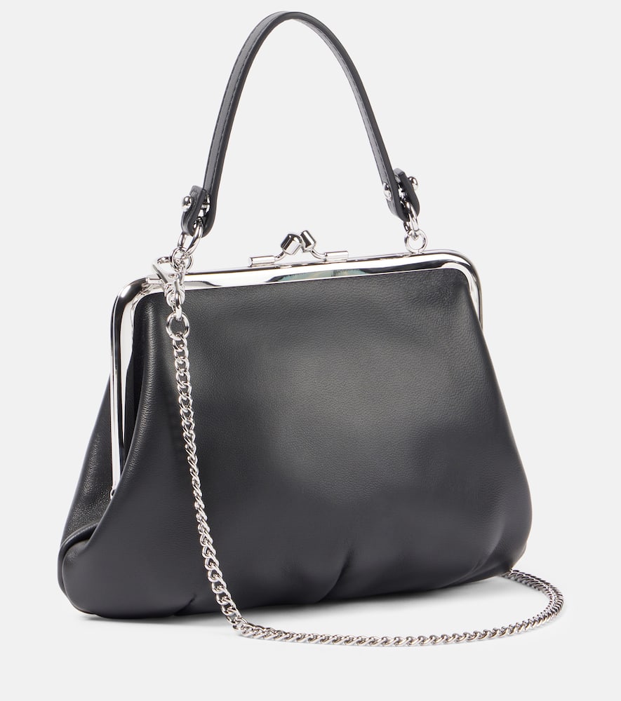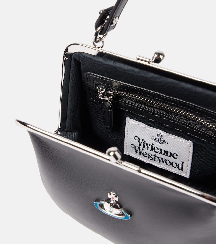 Material: lamb leather. Lining: fabric. Made in China. Designer color name: Black. Internal details: internal zipped pocket. Closure: snap-clasp fastening. Shop the latest Vivienne Westwood Top-Handle Bags for women now.