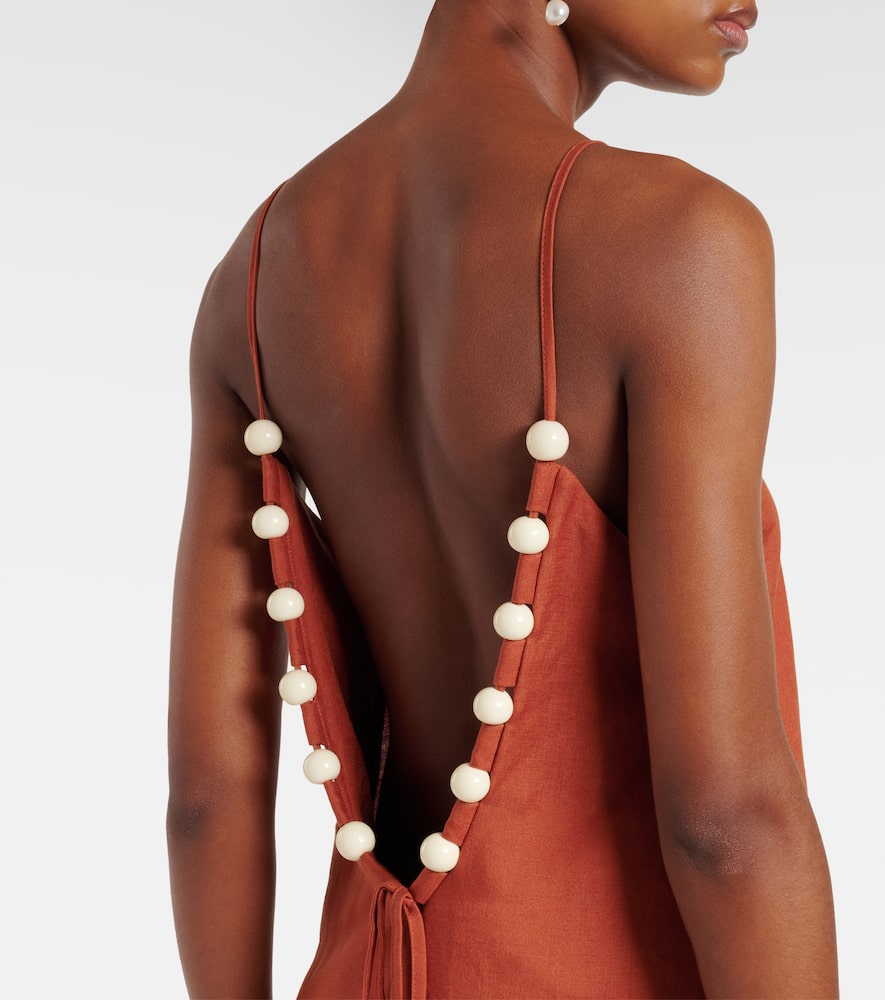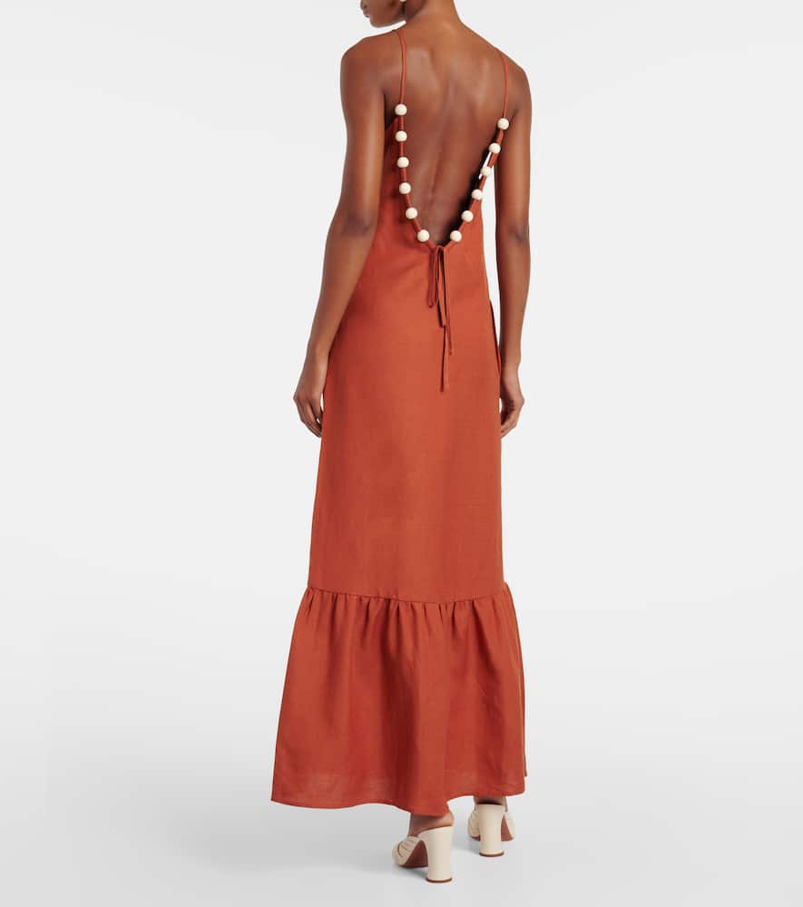 Material: 55% linen, 45% viscose. Care instructions: hand wash. Made in Brazil. Designer color name: Cognac. Shop the latest Adriana Degreas Maxi Dresses for women.