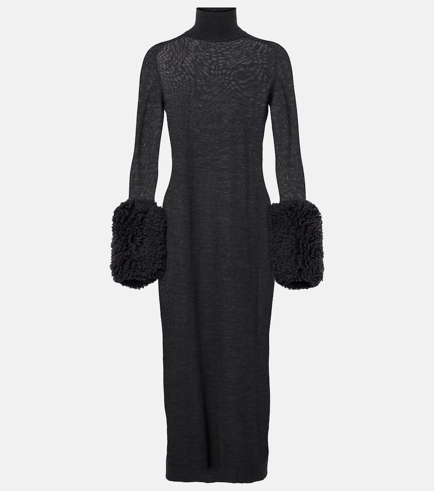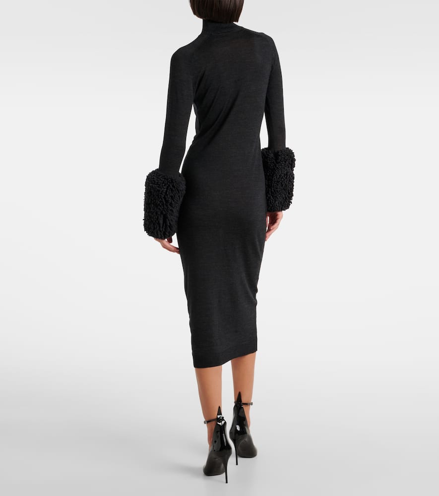 Material: 100% virgin wool. Care instructions: dry clean. Made in Italy. Designer color name: Ebene. Trim: 84% wool, 10% viscose, 3% polyester, 3% polyamide. Collar: turtleneck. Shop the latest Alaia Midi Dresses for women.
