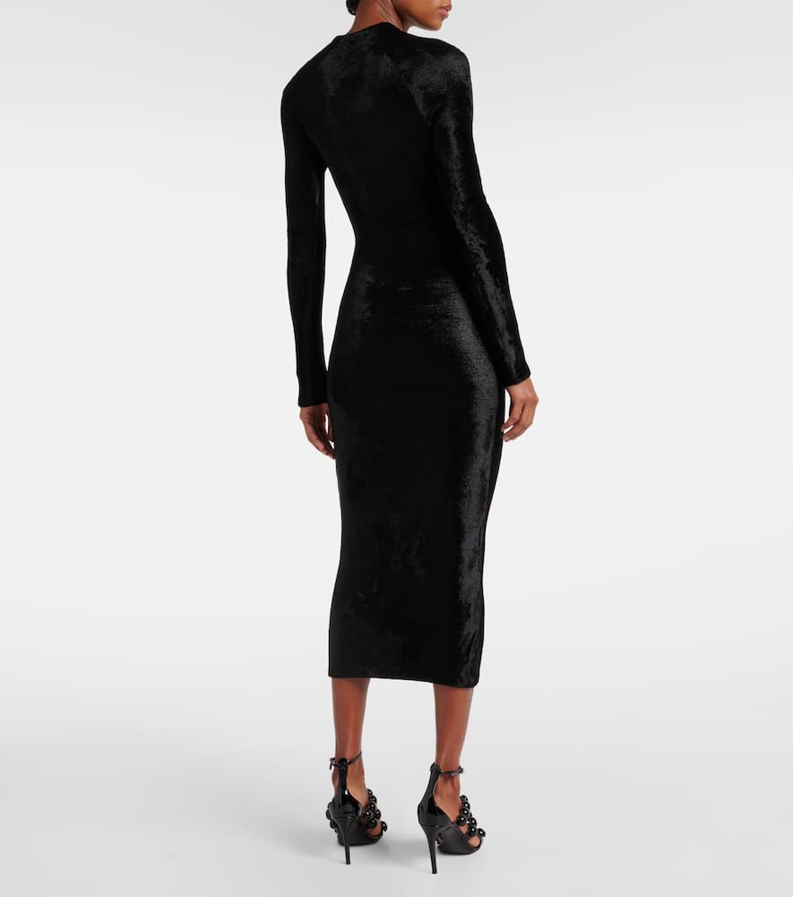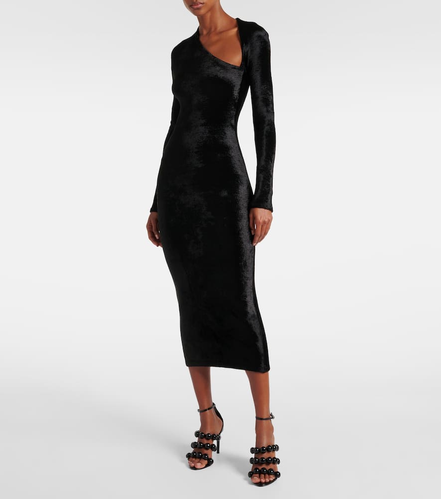 Material: 71% viscose, 16% wool, 13% polyamide. Care instructions: dry clean. Made in Italy. Designer color name: Noir Alaia. Shop the latest Alaia Midi Dresses now.