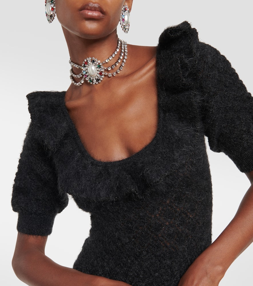 Alessandra Rich Embroidered mohair-blend minidress