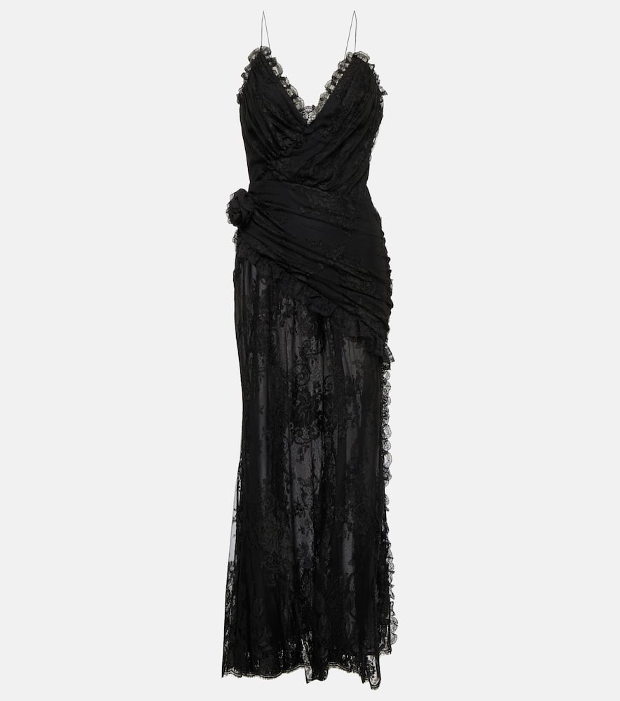 Alessandra Rich Floral-appliqué lace maxi dress