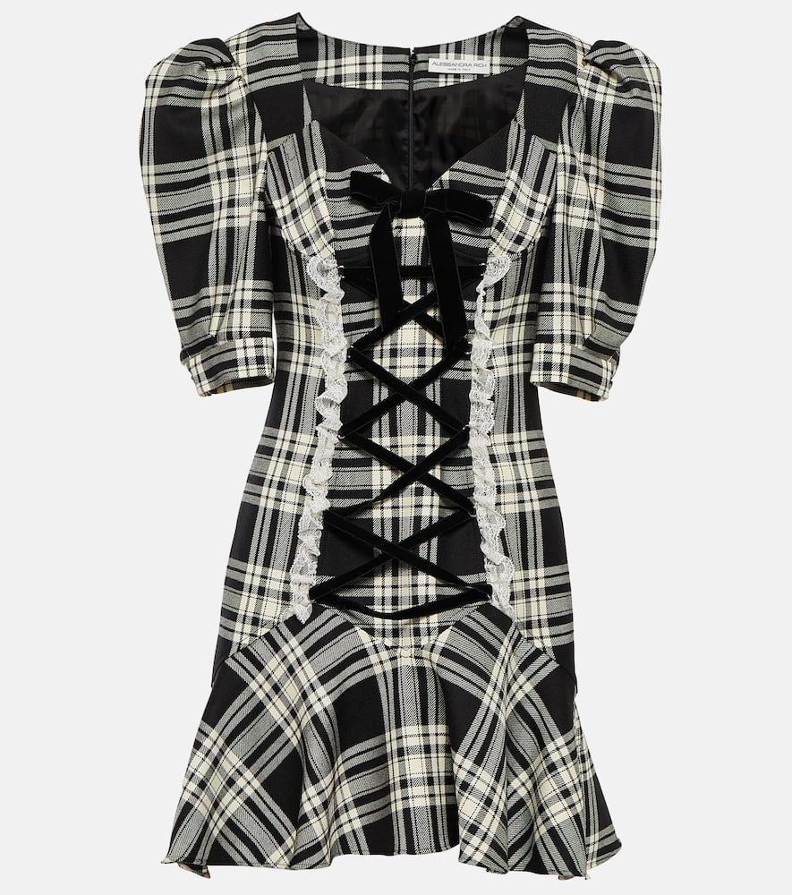 Material III: 100% polyamide. Made in Italy. Material IV: 100% polyamide. Designer color name: Black White. Closure: invisible zipper. Material II: 40% polyamide, 60% viscose. Material: 100% wool. Care instructions: dry clean. Lining: 100% cupro. Lining II: 100% polyamide. Shop the latest Alessandra Rich Mini Dresses for women.