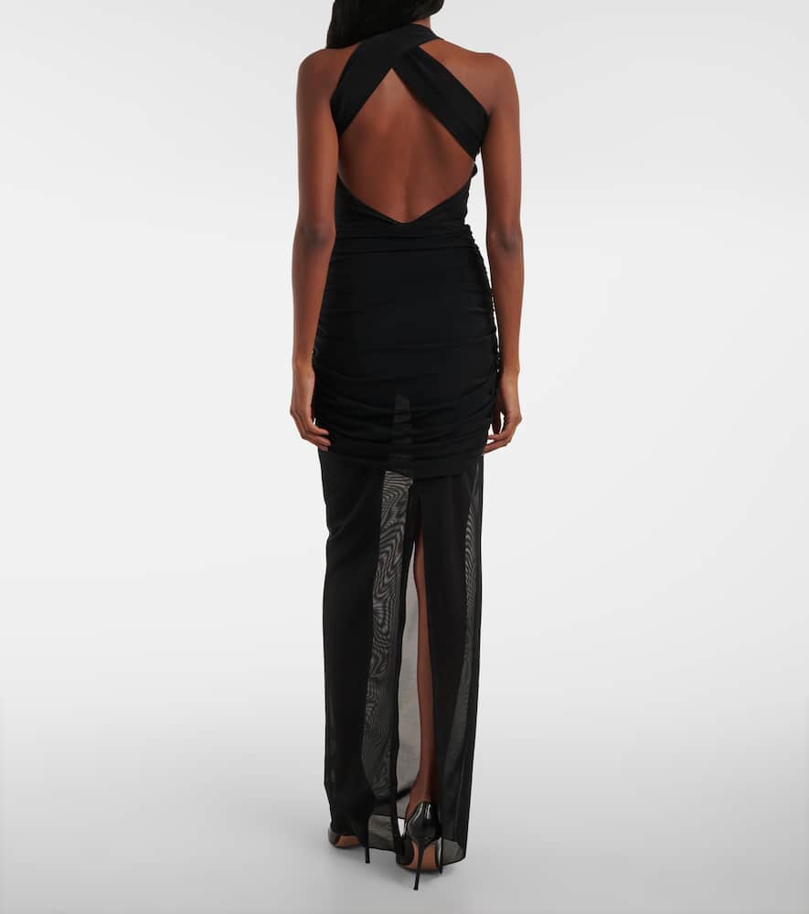 Alessandra Rich Ruched sheer mesh maxi dress