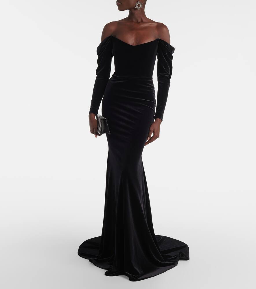 Alex Perry Draped off-shoulder velvet gown