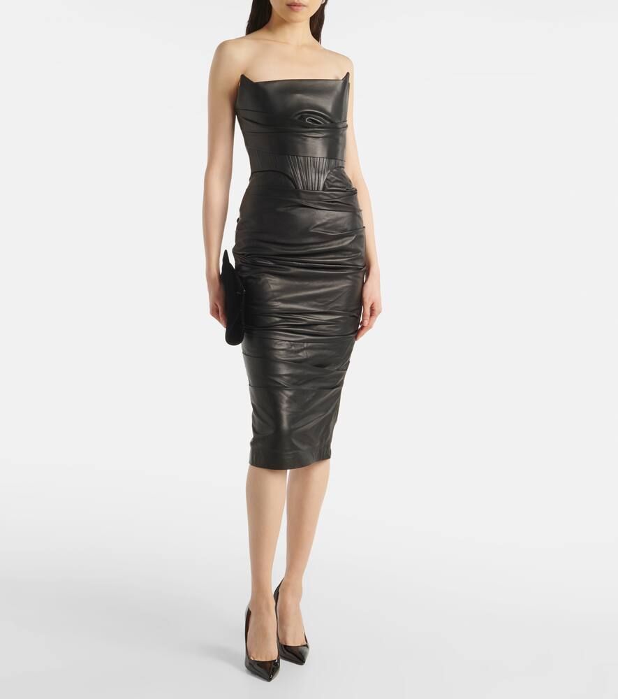 Material: 100% leather. Care instructions: specialist clean. Made in Turkey. Designer color name: Black. Lining: 80% acetate, 20% polyester. Closure: zipped back. Shop the latest Alex Perry Midi Dresses for women.
