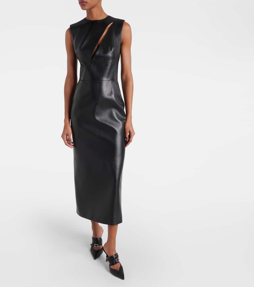 Material: 100% lamb leather. Care instructions: specialist clean. Made in Italy. Designer color name: Black. Closure: invisible zipper. Shop the latest Alexander McQueen Midi Dresses for women.