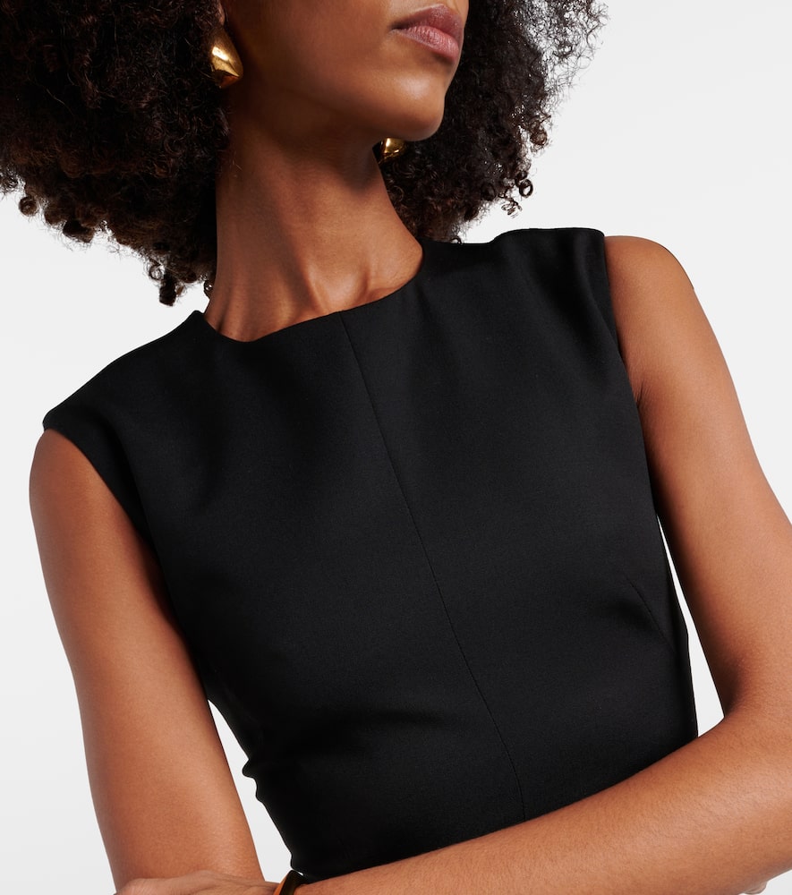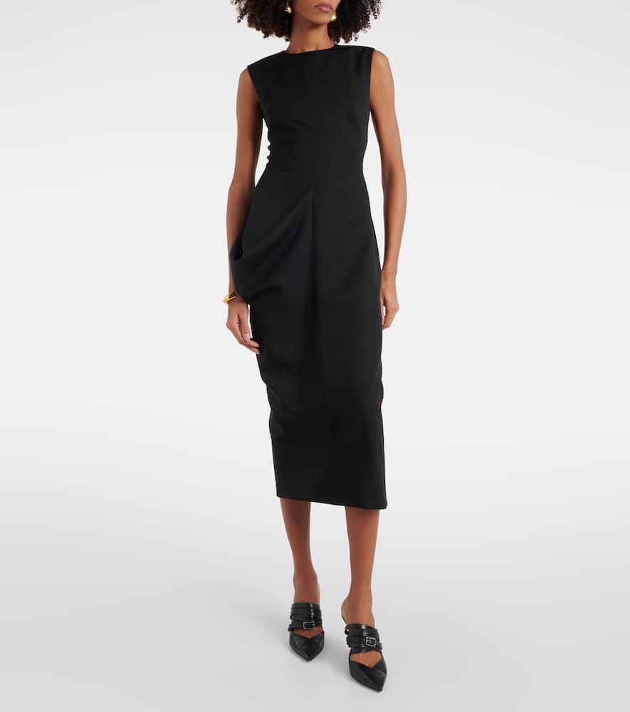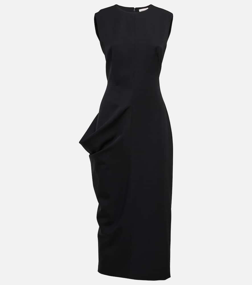 Material: 100% wool. Care instructions: dry clean. Made in Italy. Designer color name: Black. Slim fit. Closure: zipped back. Collar: crewneck. Vent: single. Shop the latest Alexander McQueen Midi Dresses for women.