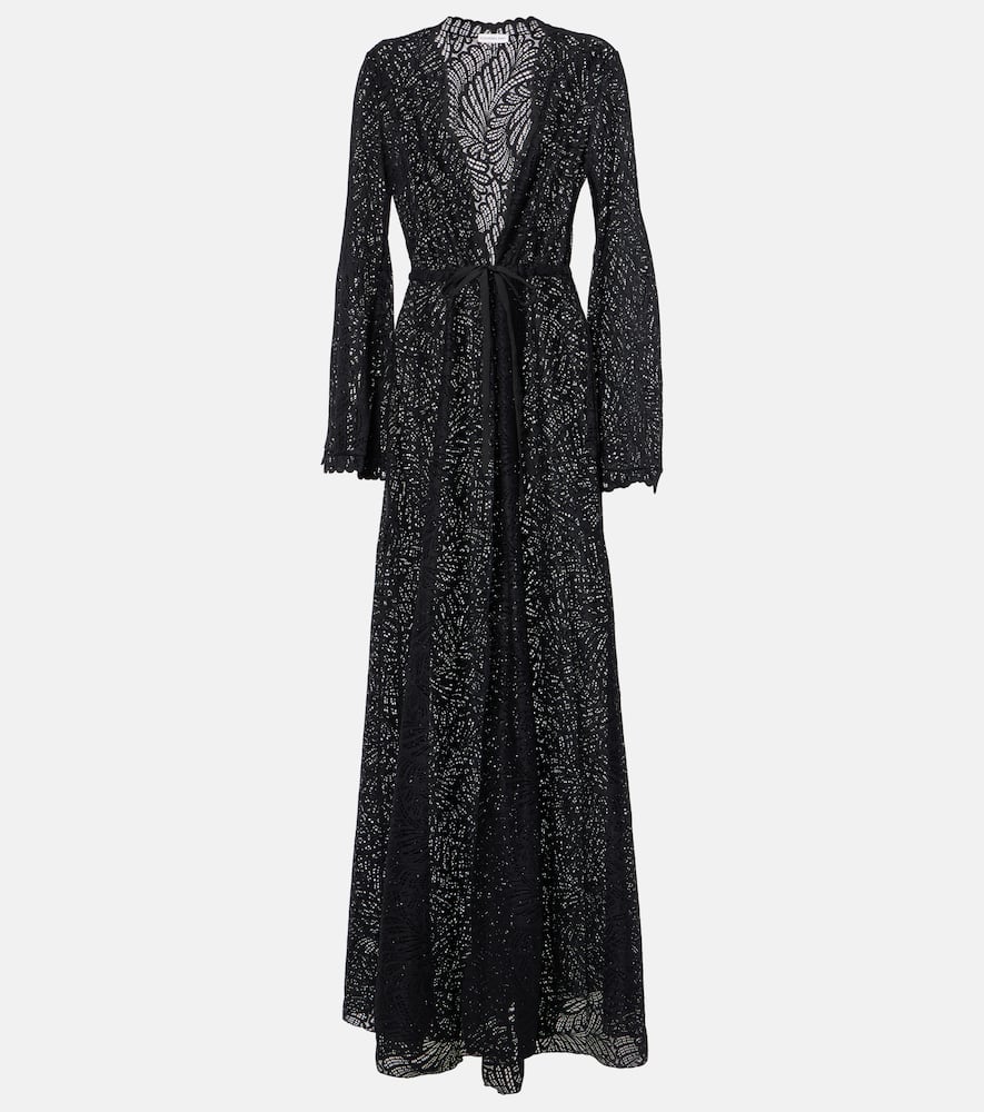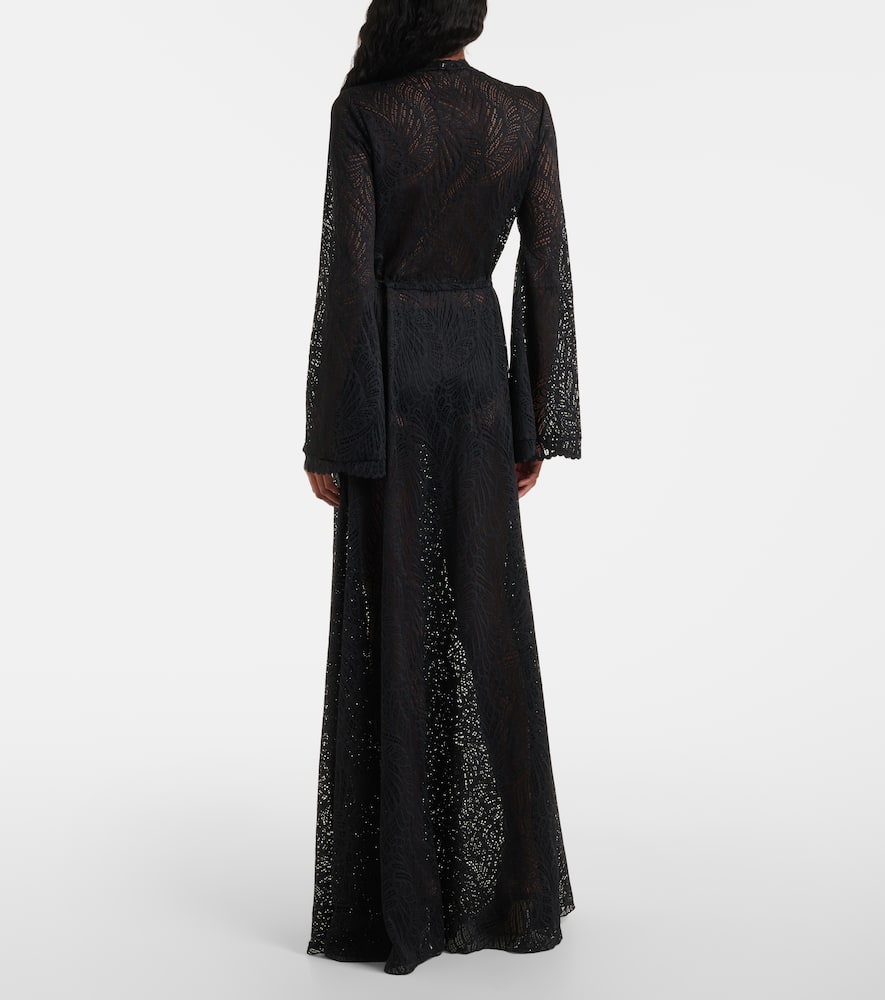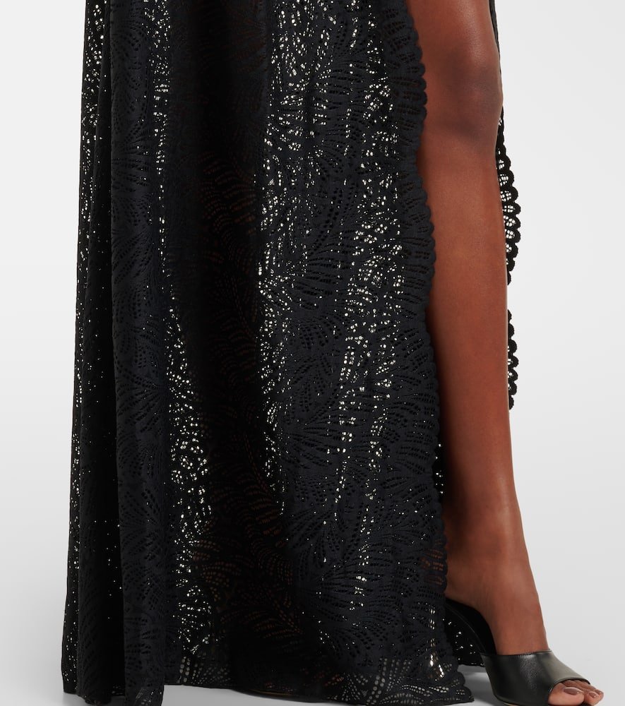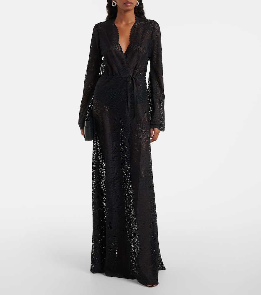 Material: 94% nylon, 6% elastane. Care instructions: hand wash. Made in China. Designer color name: Black Lace. Shop the latest Alexandra Miro Maxi Dresses for women.