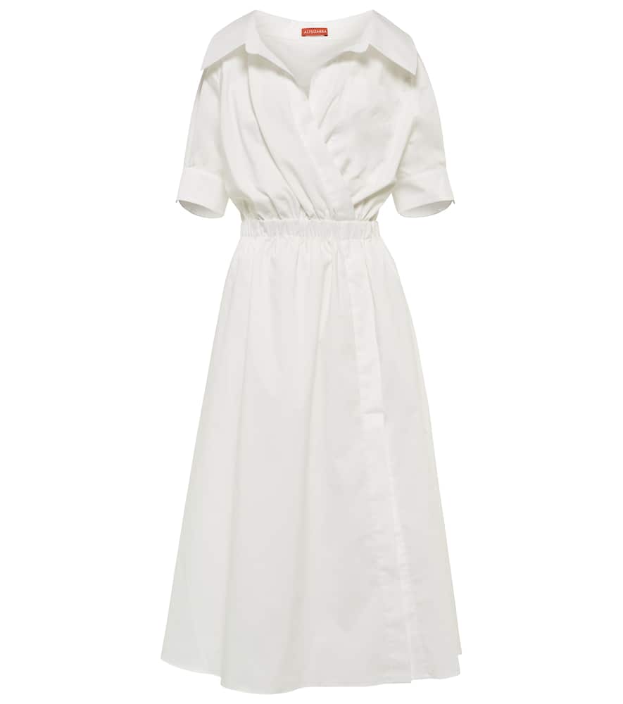 Lining: 100% polyester, partially lined. Made in Italy. Material: 30% polyester, 70% cotton. Designer color name: Optic White. Pockets: breast pocket, side slit pockets. Elasticated waistband. Closure: button fastening. Buttoned cuffs. Care instructions: dry clean. Shop the latest Altuzarra Midi Dresses for women.