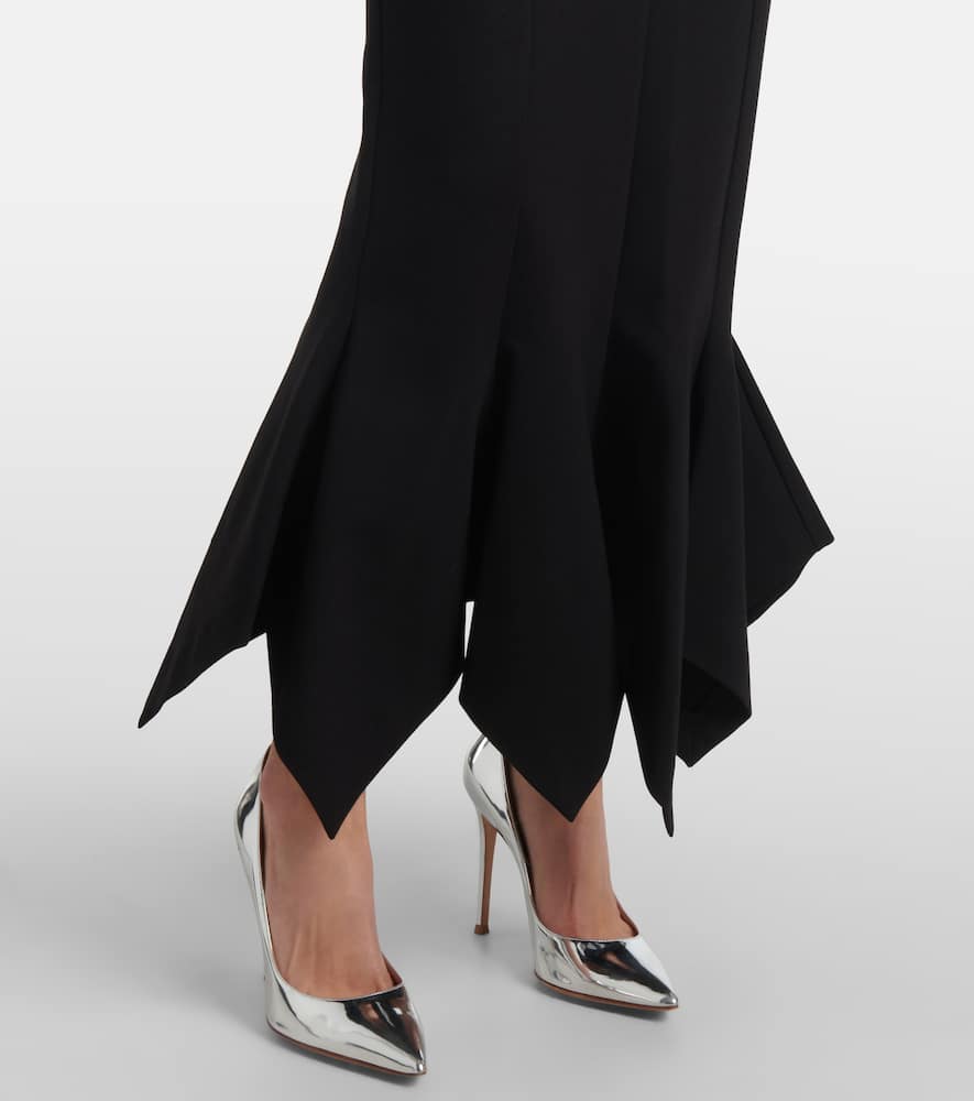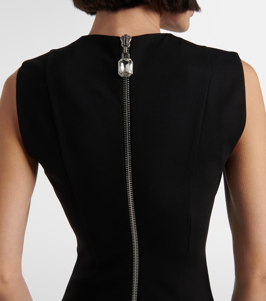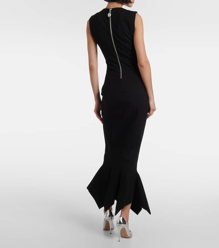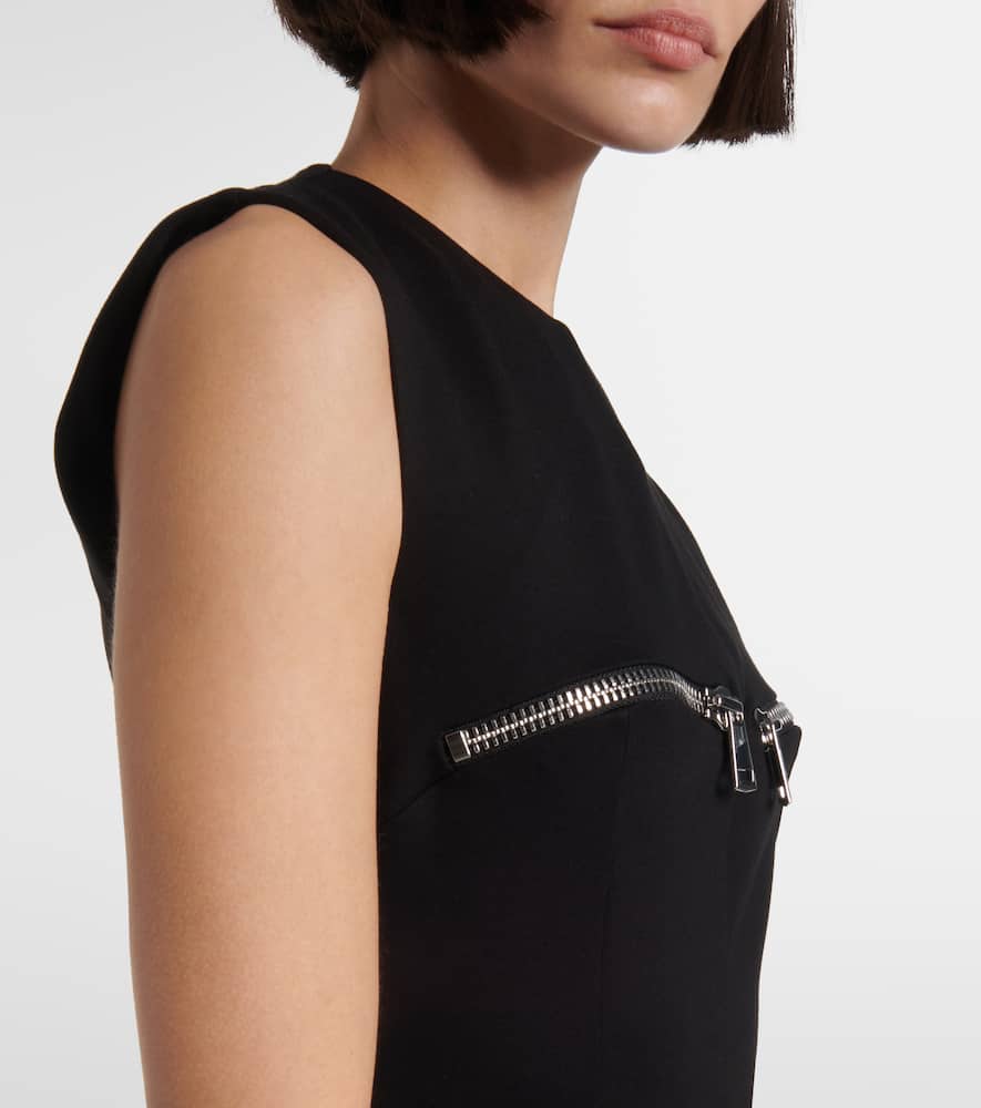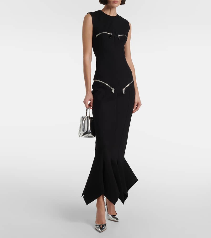Material: 67% rayon, 28% polyamide, 5% elastane. Care instructions: dry clean. Made in China. Designer color name: Black. Closure: zipped back. Pockets: zipped pockets. Shop the latest Area Midi Dresses for women.