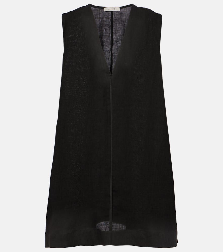Material: 100% linen. Care instructions: machine wash at 30 degrees. Made in Portugal. Designer color name: Black. Pockets: side slit pockets. Shop the latest Asceno Mini Dresses for women.