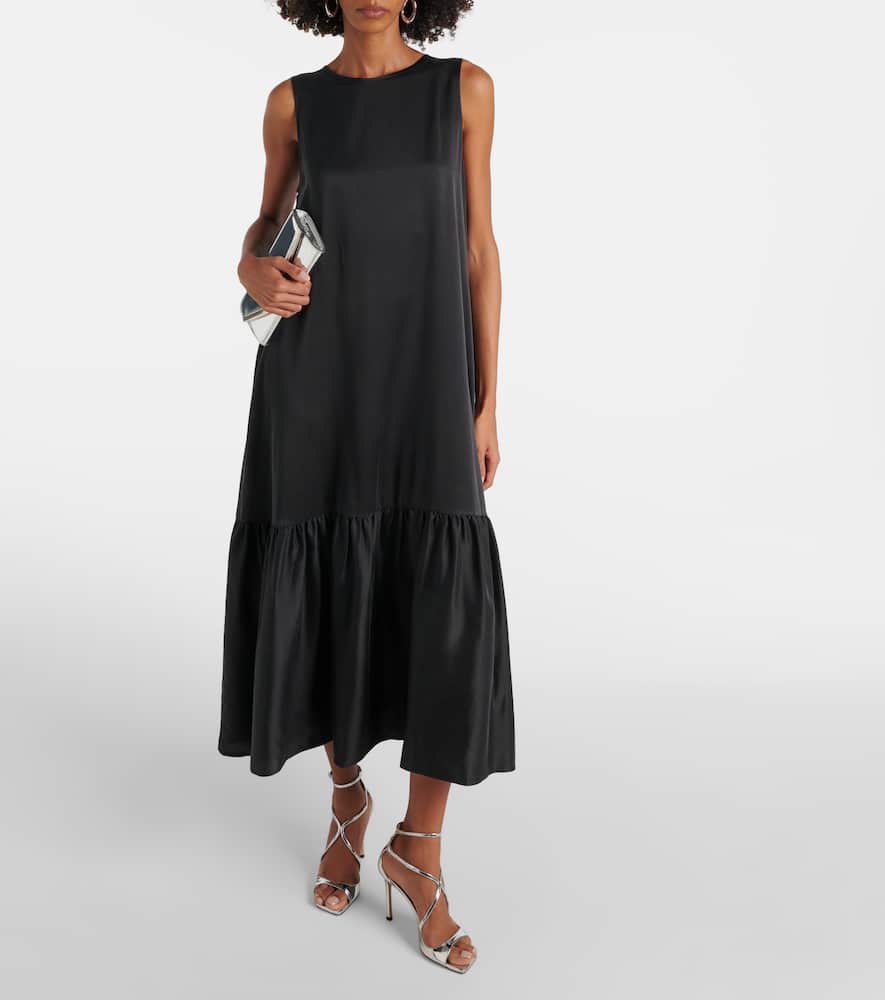 Material: 100% silk. Care instructions: hand wash. Made in China. Designer color name: Black. Shop the latest Asceno Midi Dresses for women.
