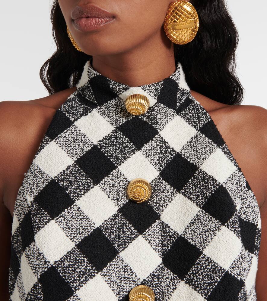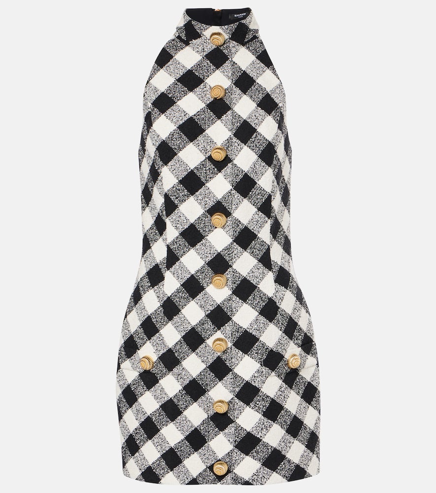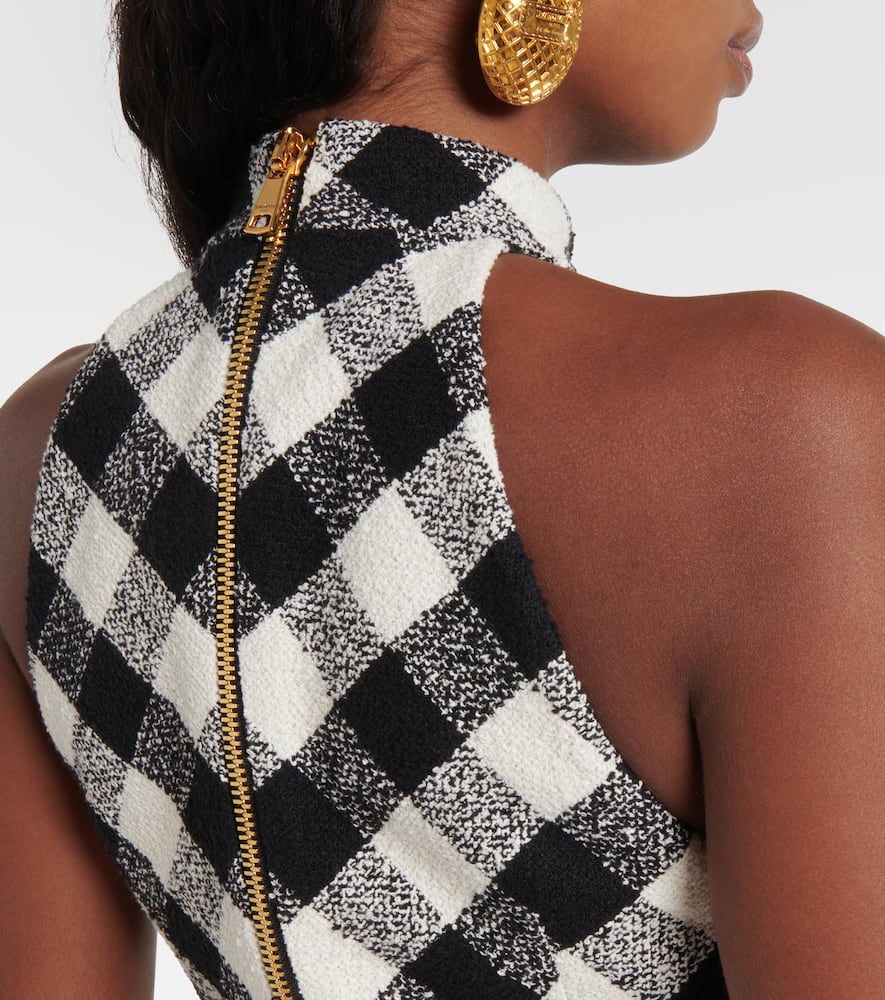 Material: 62% cotton, 34% polyester, 4% other fibres. Care instructions: dry clean. Made in Bulgaria. Designer color name: Noir/Blanc. Pocket lining: 100% faux leather. Material II: 77% acetate, 23% viscose. Lining: 52% viscose, 48% cotton. Closure: zipped back. Shop the latest Balmain Mini Dresses for women.
