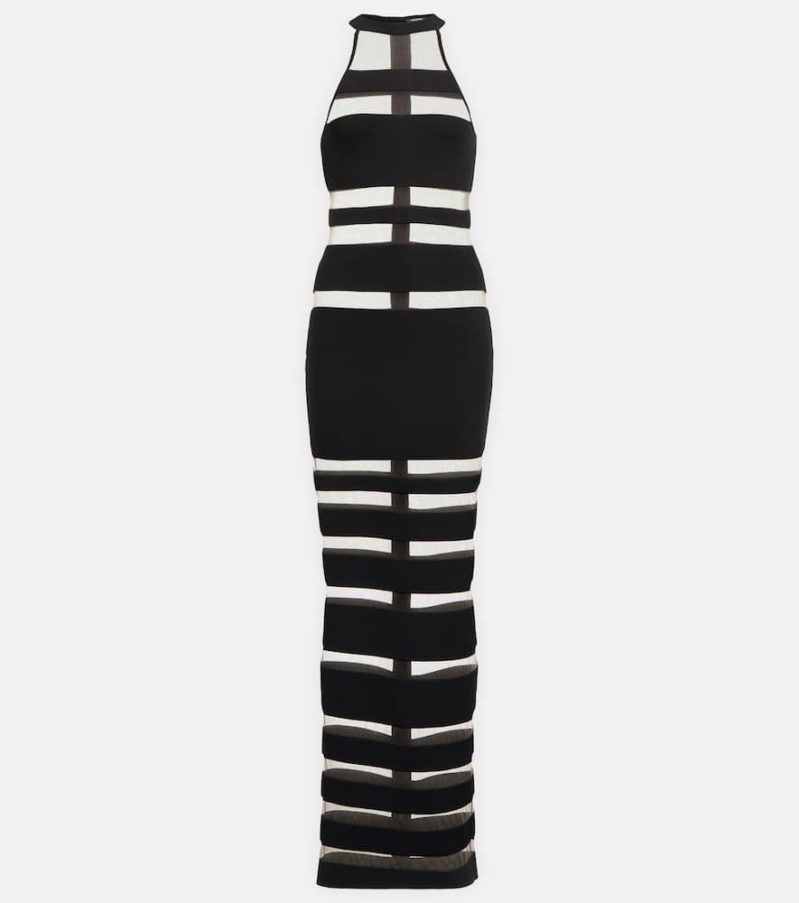 Balmain Halterneck mesh-paneled gown