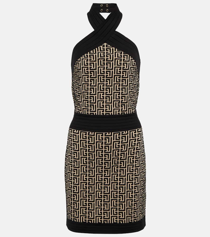 Balmain Monogram halter-neck minidress