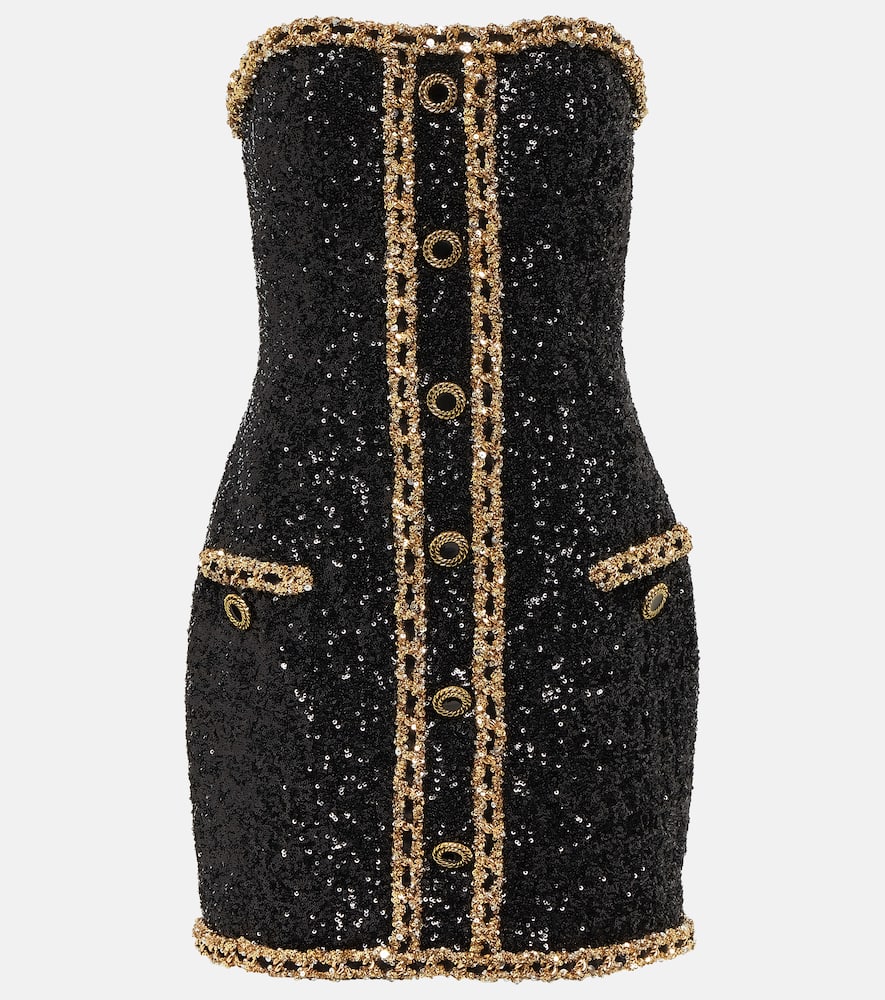 Material: 97% polyamide, 3% elastane. Care instructions: dry clean. Material II: 100% polyester. Designer color name: Ead Noir/Or. Made in India. Shop the latest Balmain Mini Dresses for women.