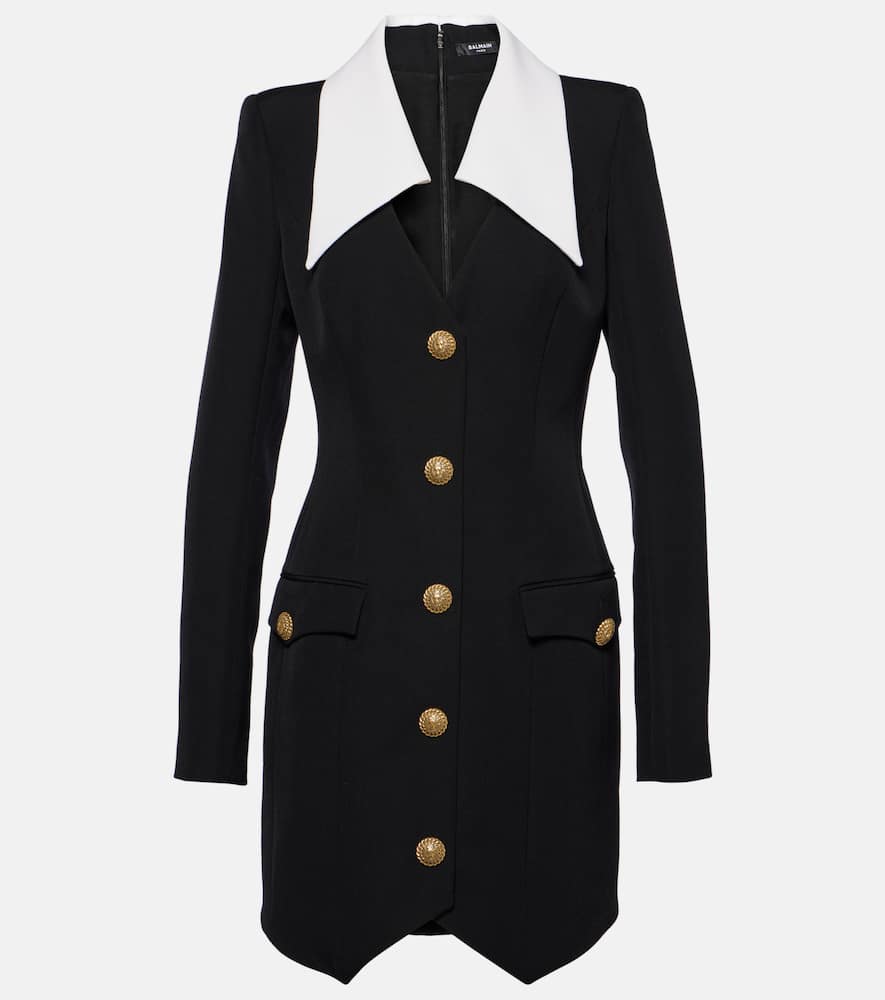 Material: 100% virgin wool. Care instructions: dry clean. Made in Slovakia. Designer color name: Noir/Blanc. Lining: 52% viscose, 48% cotton. Closure: zipped back, invisible zipper, hook fastening. Pockets: flap pockets, buttoned pockets. Shop the latest Balmain Mini Dresses for women.