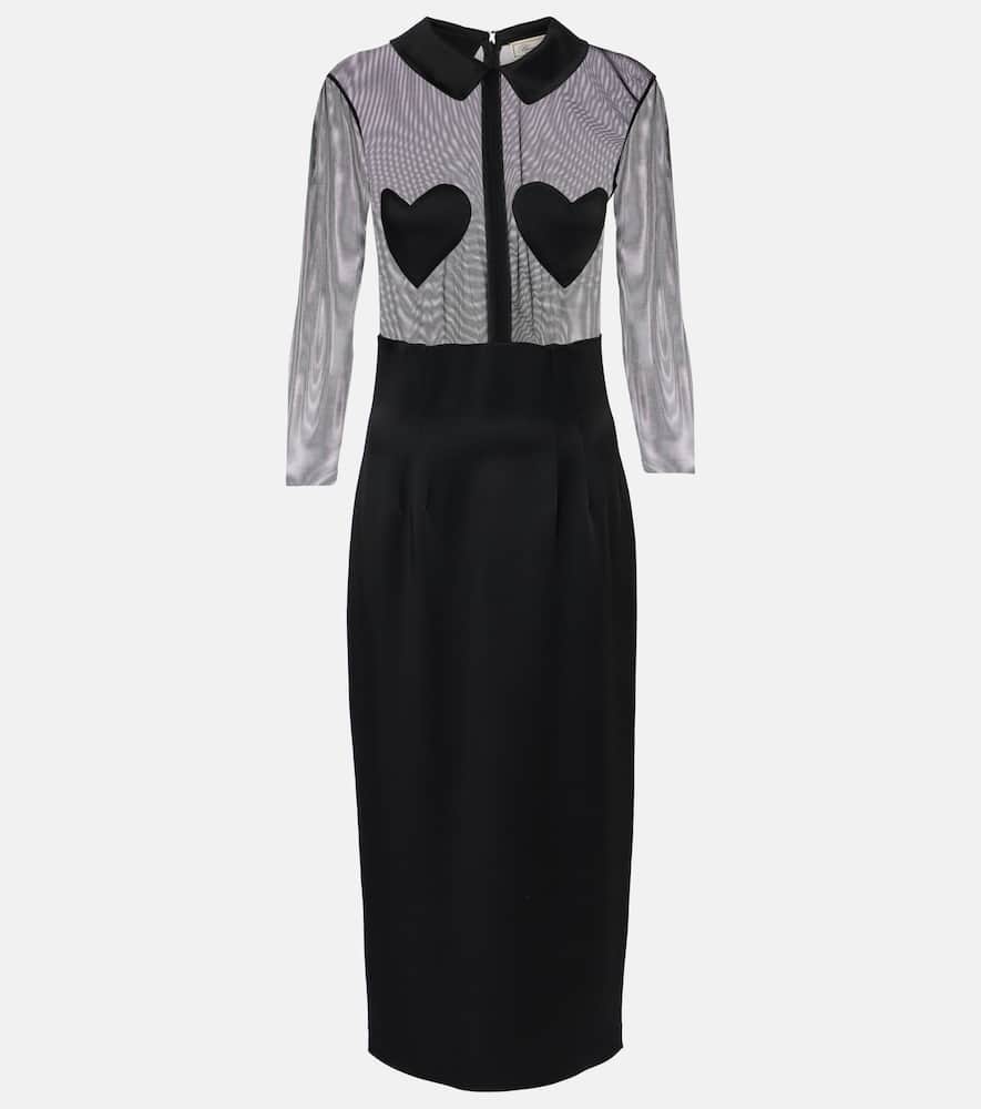 Material: 71% acetate, 27% viscose, 2% elastane. Care instructions: dry clean. Made in Italy. Designer color name: Black. Material II: 82% polyamide, 18% elastane. Lining: 100% polyester. Closure: invisible zipper. Shop the latest Blumarine Midi Dresses for women.