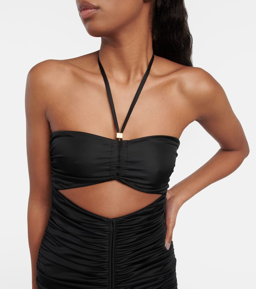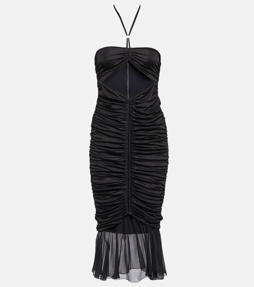 Lining: 73% polyamide, 27% elastane. Made in Italy. Material: 100% viscose. Designer color name: Nero. Material II: 100% silk. Care instructions: dry clean. Shop the latest Blumarine Midi Dresses for women.
