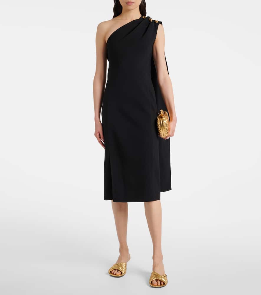 Material: 46% wool, 44% viscose, 10% polyamide. Care instructions: dry clean. Made in Italy. Designer color name: Black. Closure: invisible zipper. Shop the latest Bottega Veneta Midi Dresses for women.