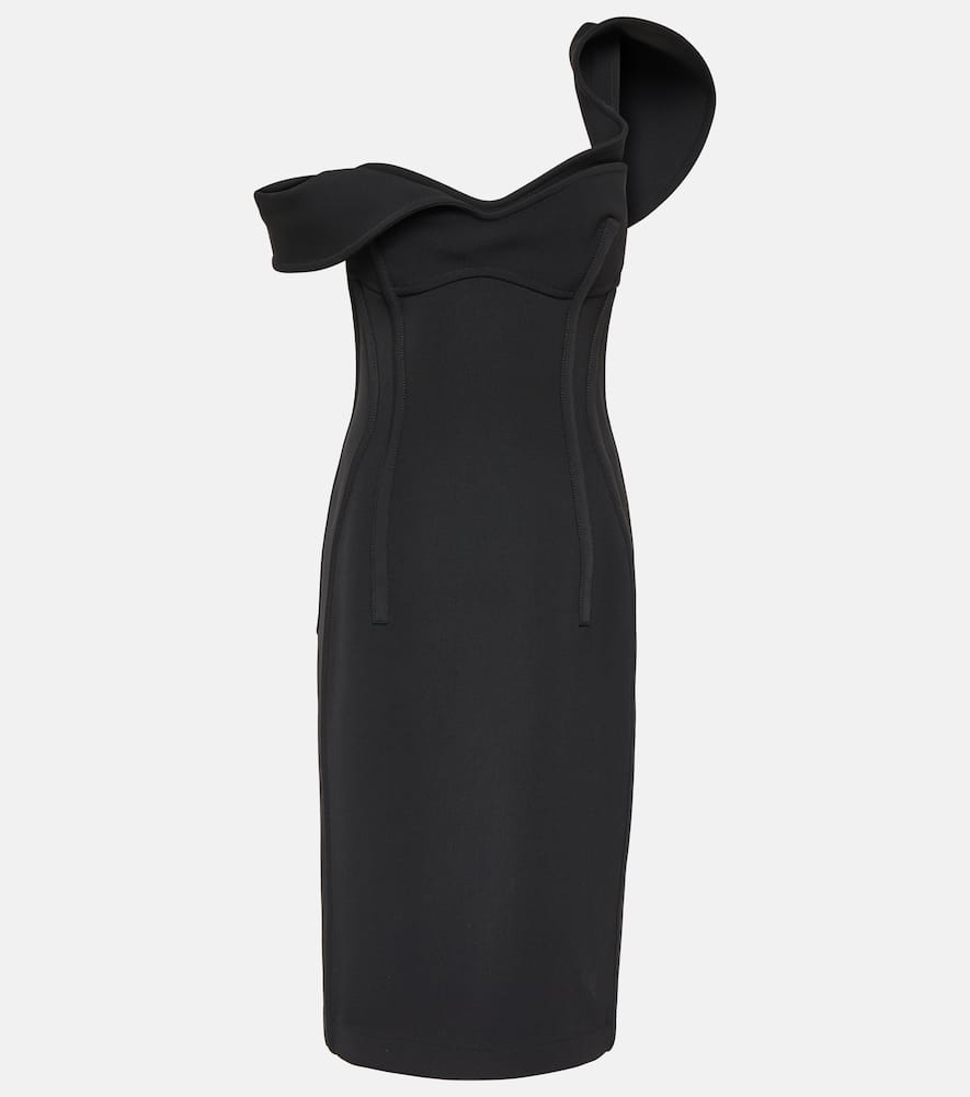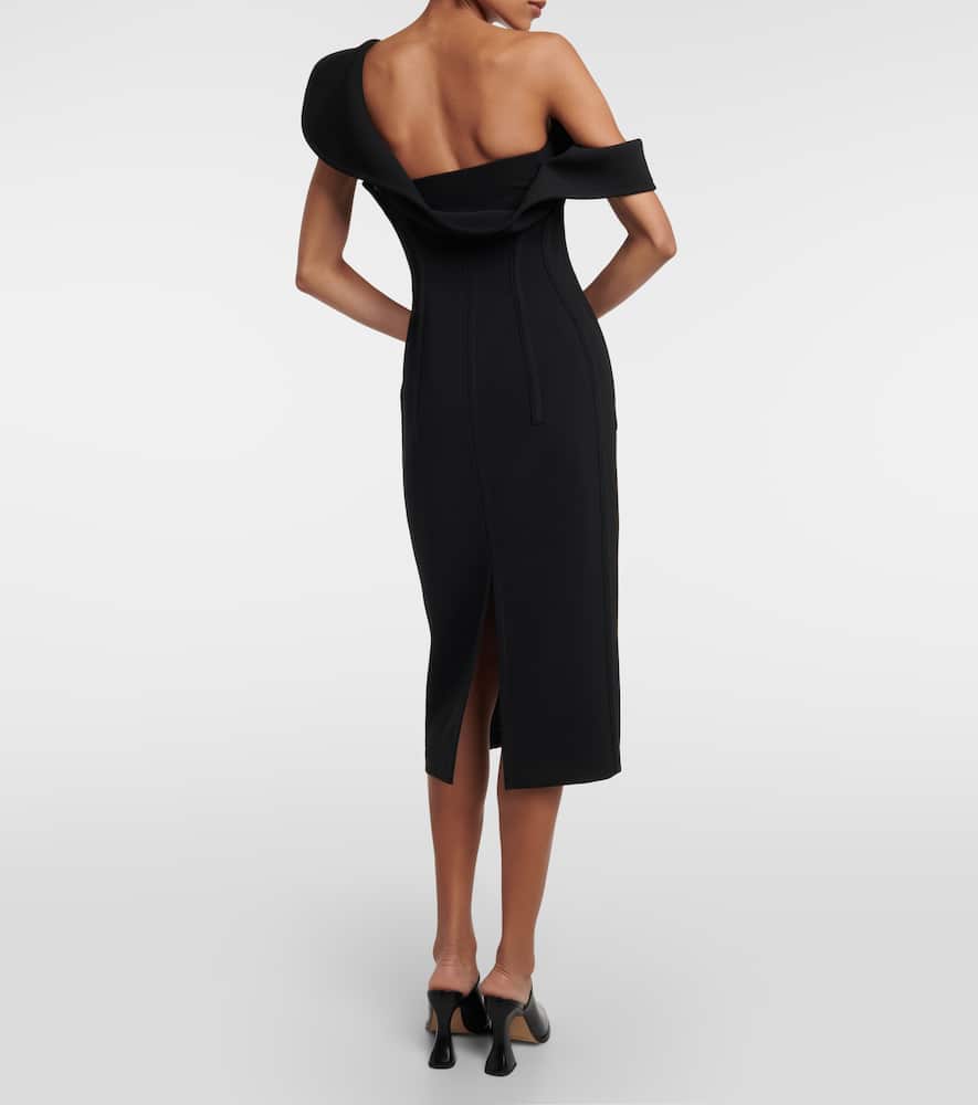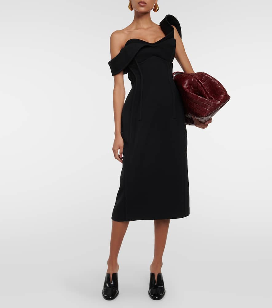 Material: 100% wool. Care instructions: dry clean. Made in Italy. Designer color name: Black. Trim: 74% viscose, 26% polyamide. Lining: 100% viscose. Closure: zipped side, hook fastening. Shop the latest Bottega Veneta Midi Dresses for women.
