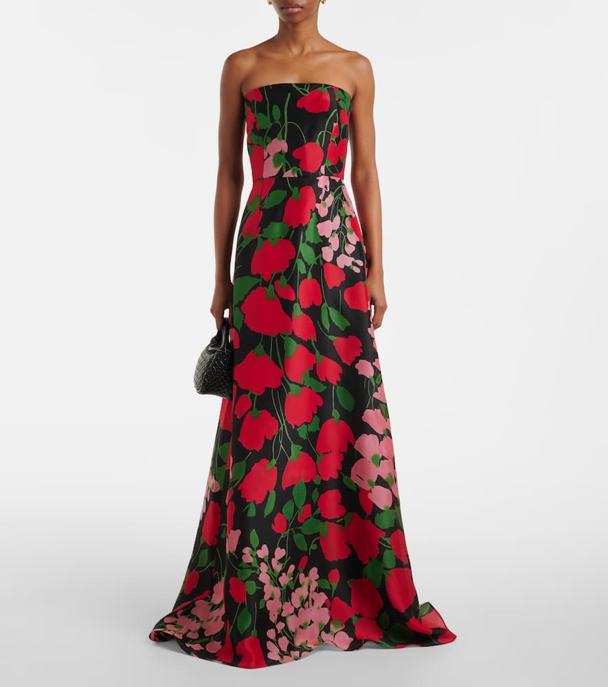 Material: 100% silk. Care instructions: dry clean. Made in the USA. Designer color name: Black Multi. Lining: 100% silk. Closure: zipped back. Shop the latest Carolina Herrera Maxi Dresses for women.