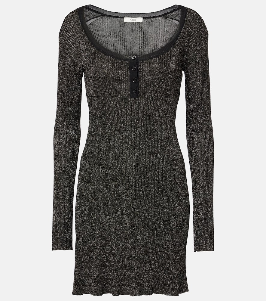 Material: 83% viscose, 17% metallic fibres. Care instructions: dry clean. Made in China. Designer color name: Black Gold. Contains non-textile parts of animal origin. Closure: partially buttoned front. Shop the latest Chloe Mini Dresses for women.