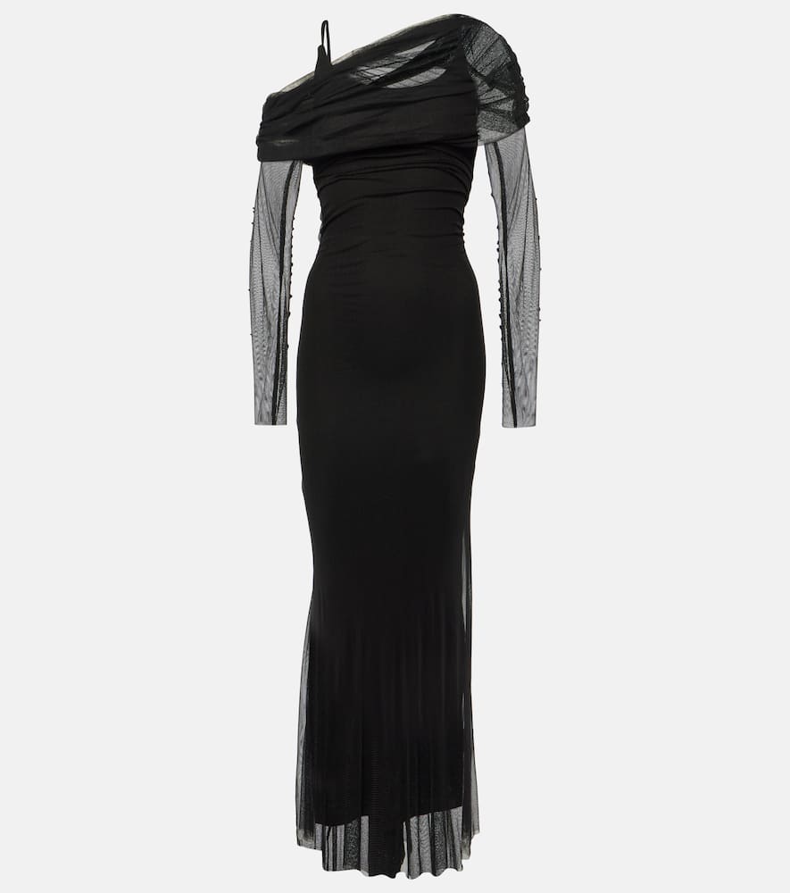 Christopher Esber Veiled off-shoulder silk tulle gown