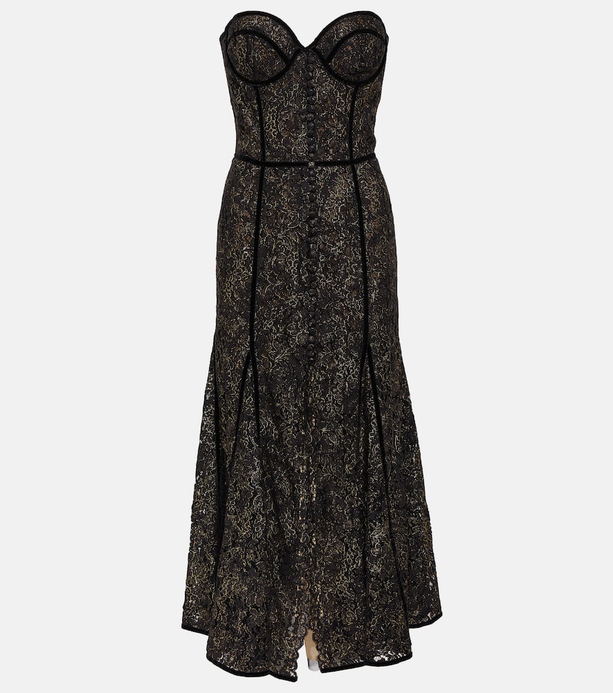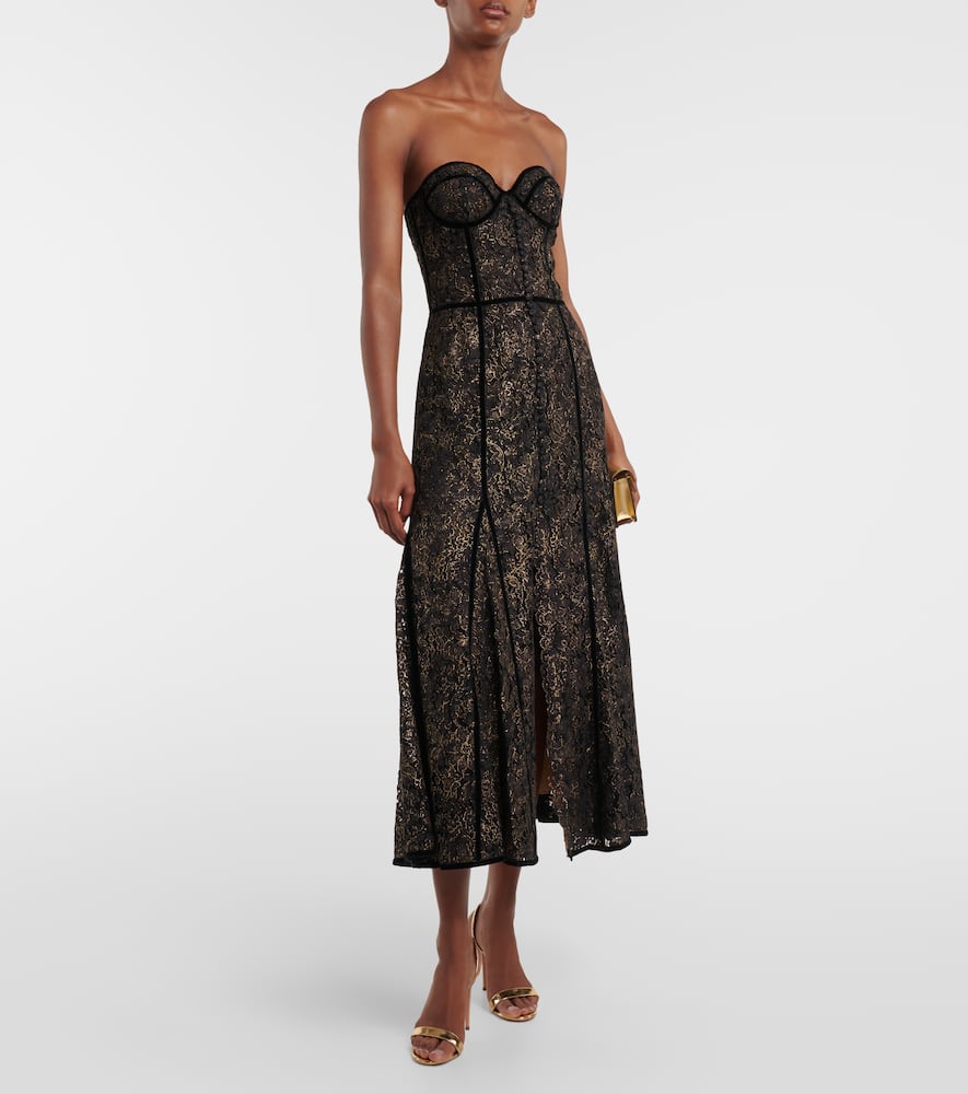 Material: 39% cotton, 15% polyamide, 46% viscose. Care instructions: dry clean. Made in Greece. Designer color name: Black - Gold. Closure: zipped back. Material II: 100% polyamide. Lining: 100% polyester. Shop the latest Costarellos Midi Dresses for women.