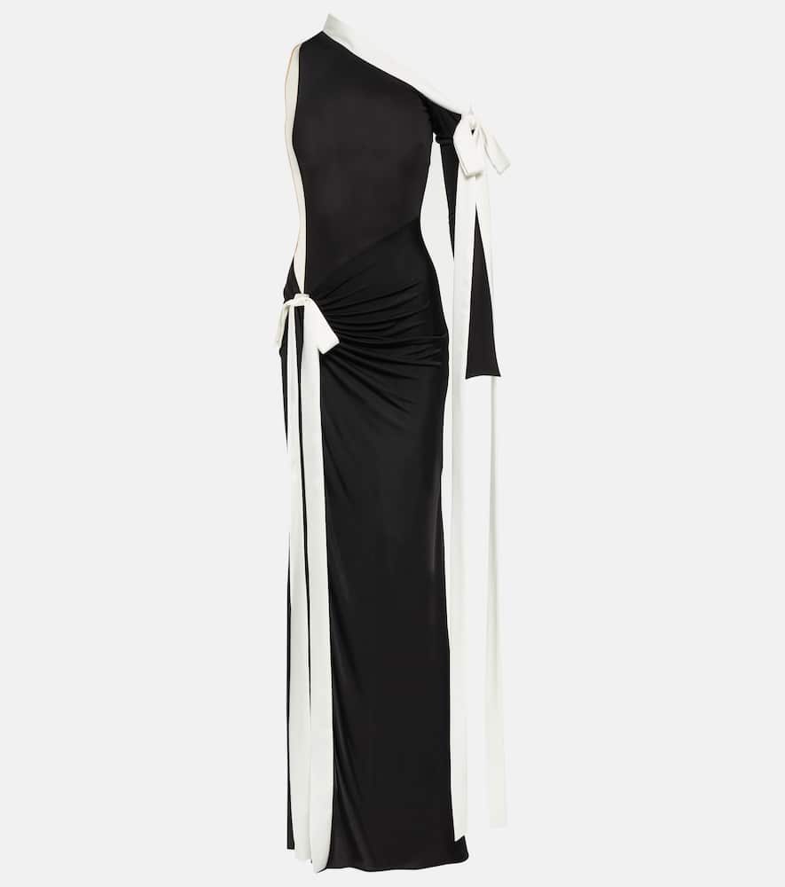 Material: 100% viscose. Care instructions: dry clean. Made in the UK. Designer color name: Black/White. Closure: zipped back. Trim: 78% triacetate, 22% polyester. Shop the latest David Koma Maxi Dresses for women.