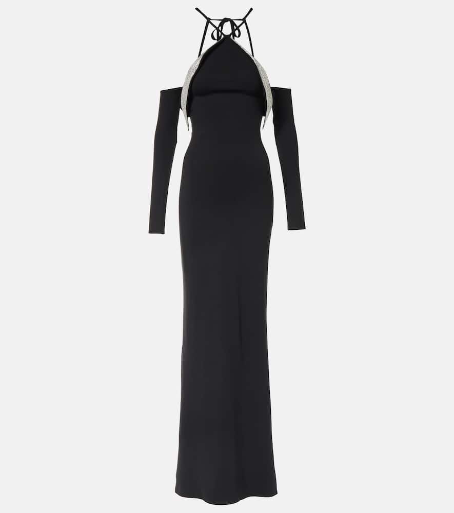 Material: 60% viscose, 35% polyamide, 5% elastane. Care instructions: dry clean. Made in the UK. Designer color name: Black/Silver. Embroidery: 100% glass. Closure: zipped back. Shop the latest David Koma Maxi Dresses for women.