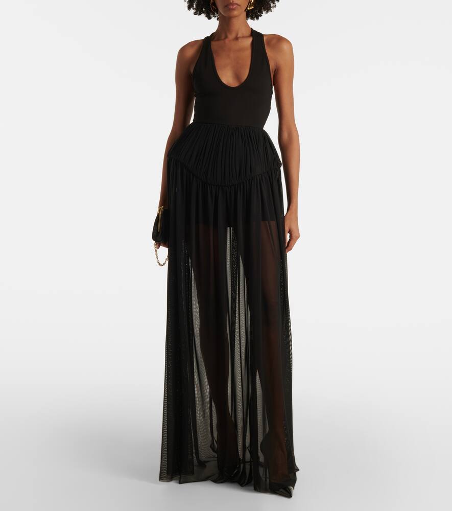 Material: 62% viscose, 33% polyamide, 5% elastane. Care instructions: do not dry clean. Made in the UK. Designer color name: Black. Material II: 92% polyamide, 8% elastane. Closure: zipped back. Shop the latest David Koma Maxi Dresses for women.