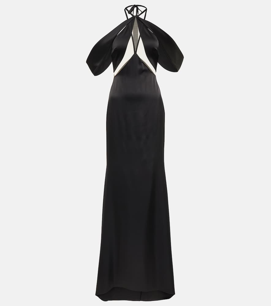 Material: 78% triacetate, 22% polyester. Care instructions: dry clean. Made in the UK. Designer color name: Black. Closure: zipped back. Shop the latest David Koma Maxi Dresses for women.